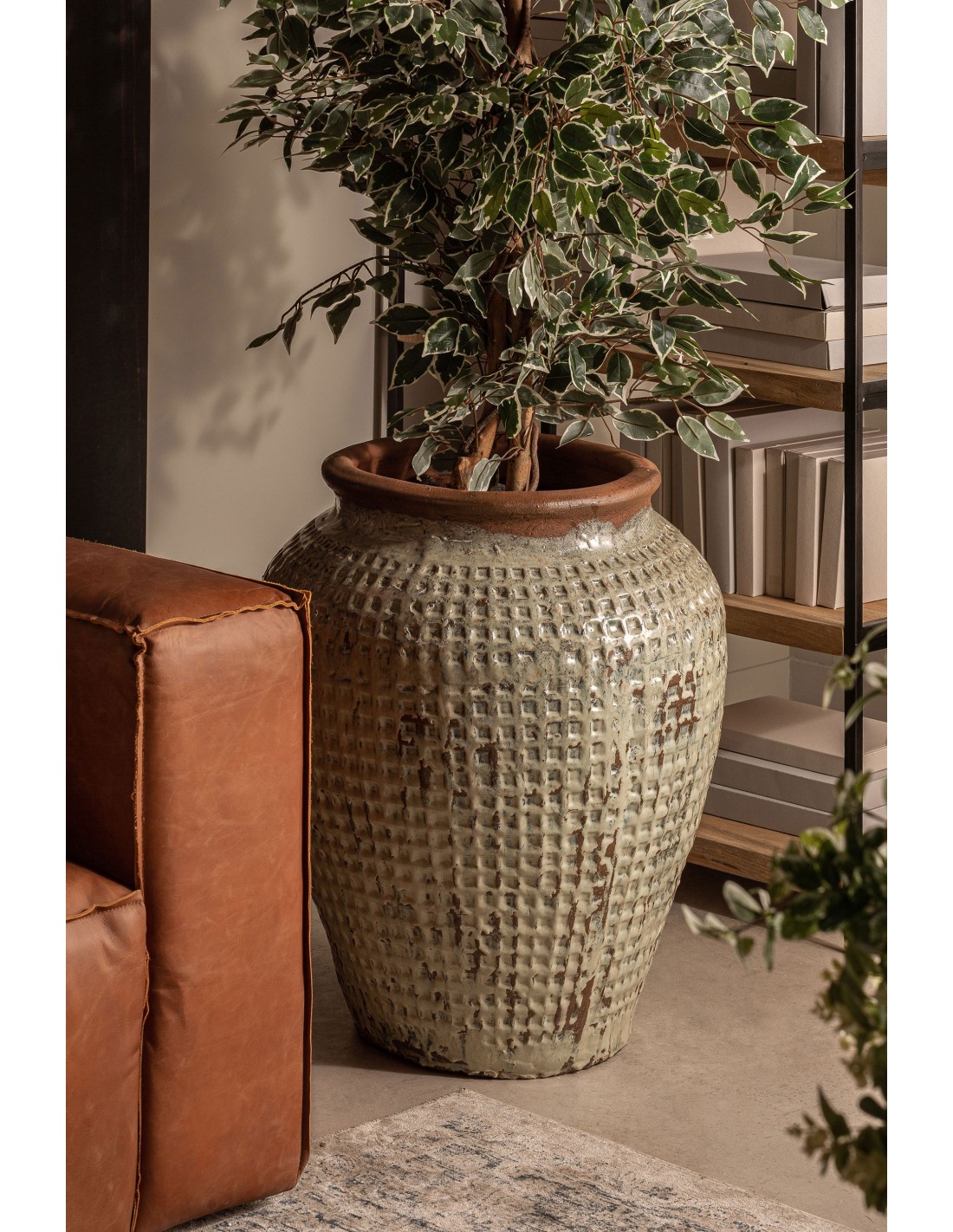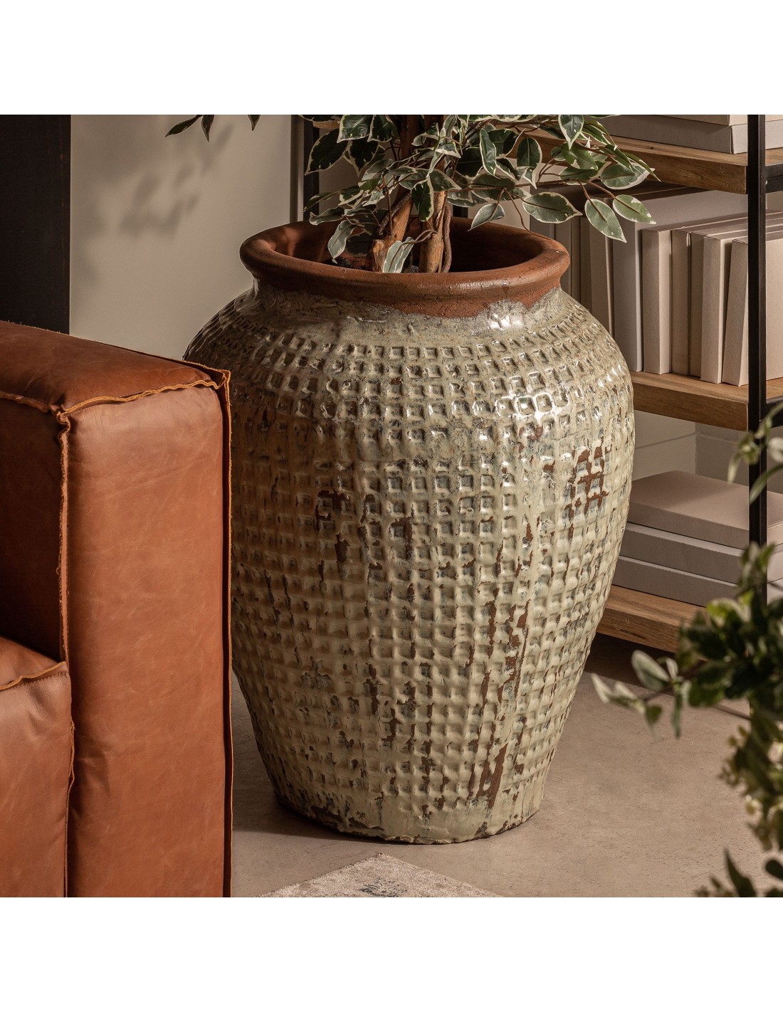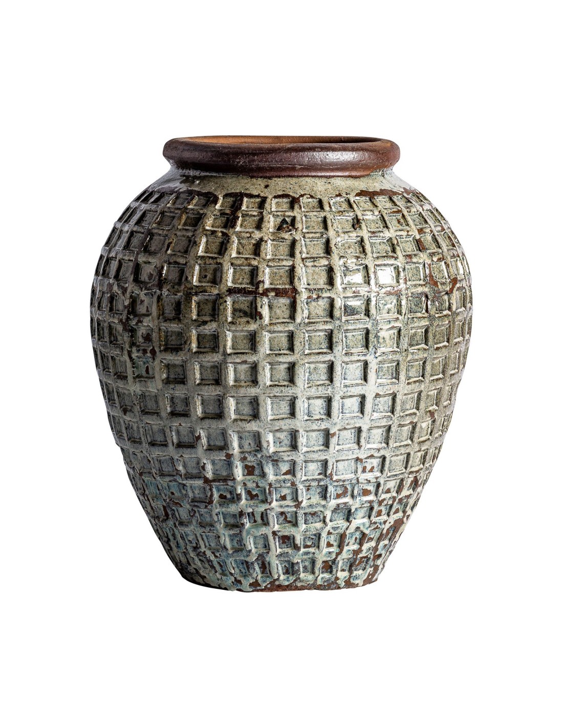TINAJA BLEGY, EN COLOR TONOS EN VERDE ENVEJECIDO, DE ESTILO CLÁSICO. FABRICADO EN CERÁMICA.