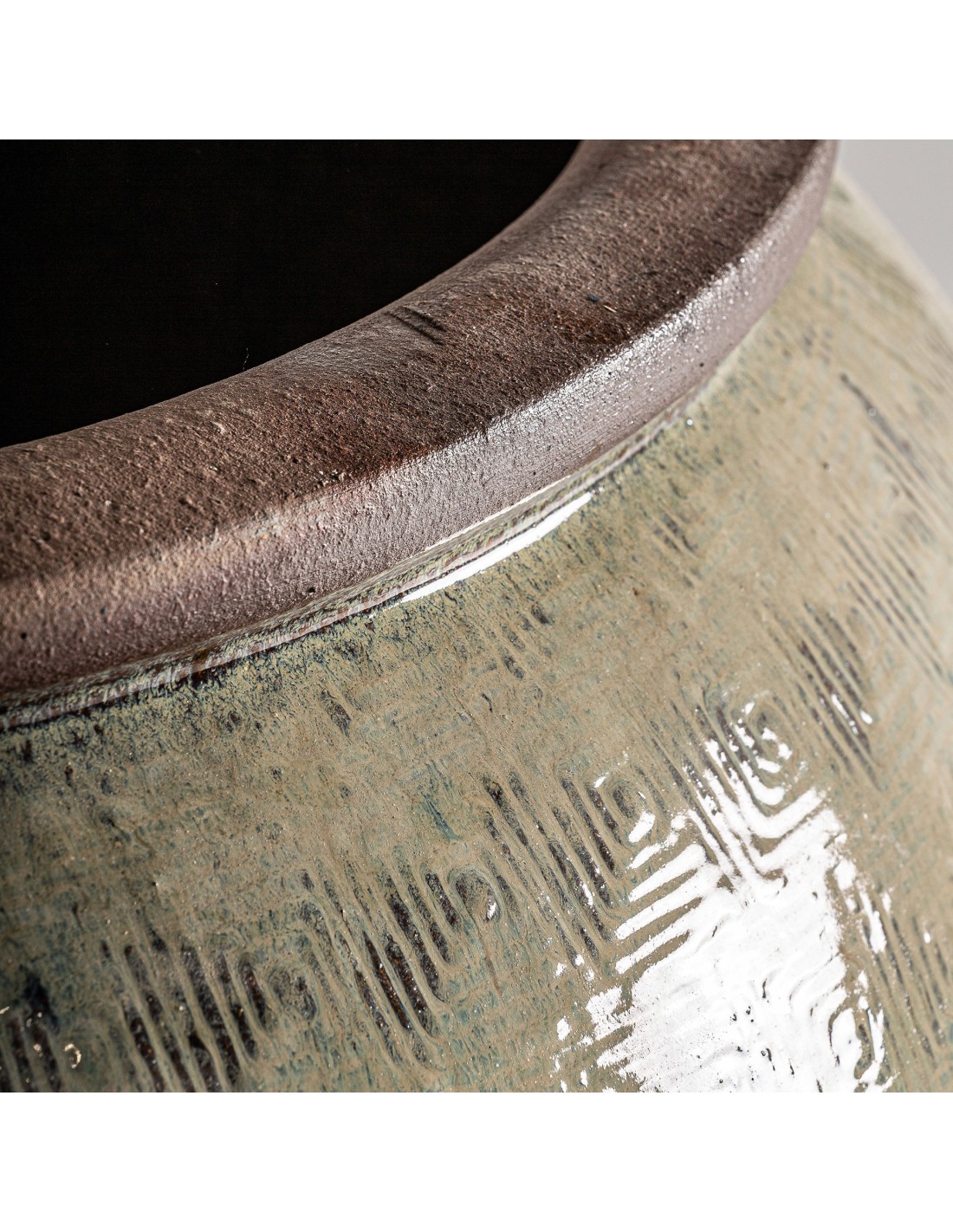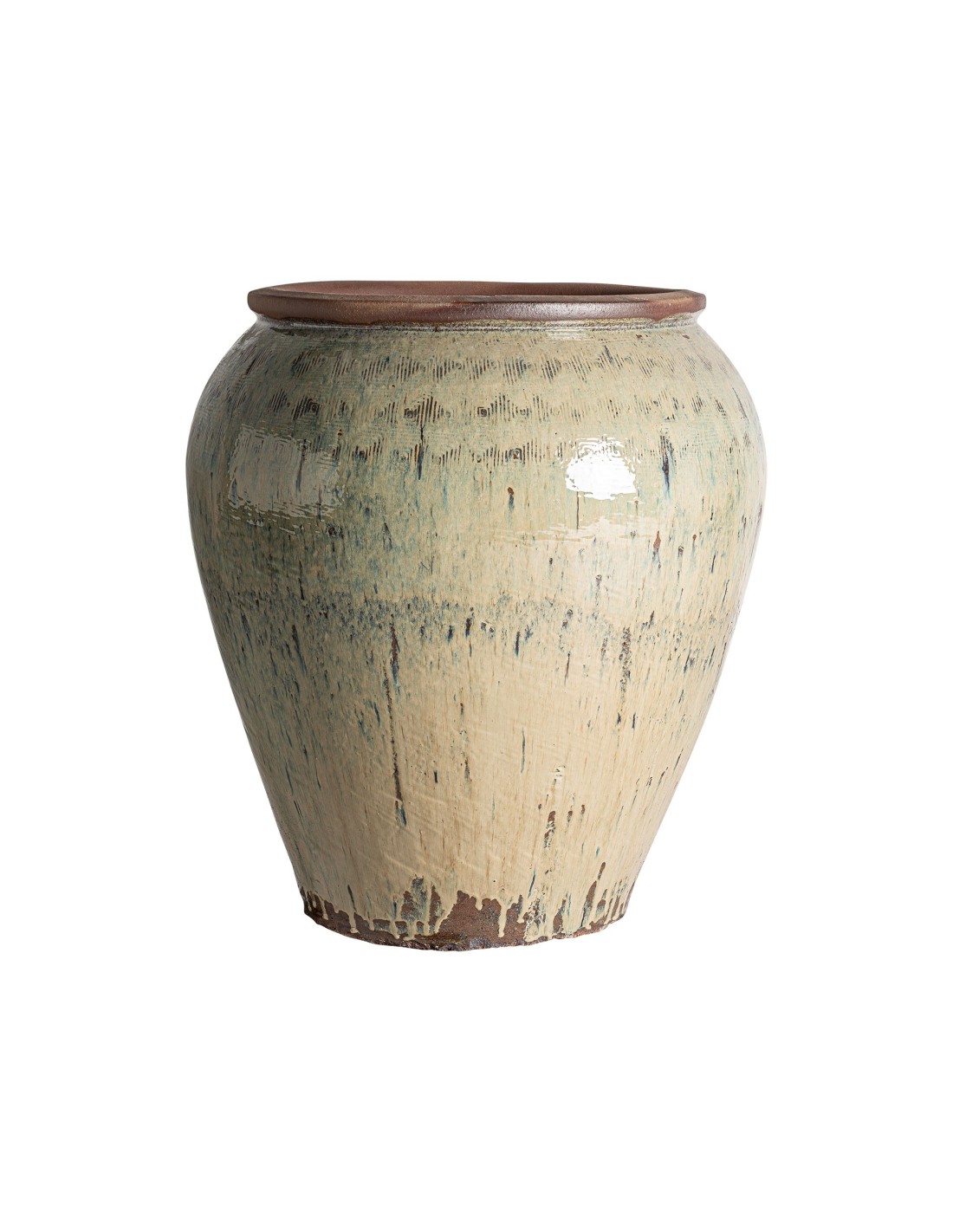TINAJA CILINDRICA NAIROBI, EN COLOR BEIGE ENVEJECIDO, DE ESTILO VINTAGE. FABRICADO EN CERÁMICA.