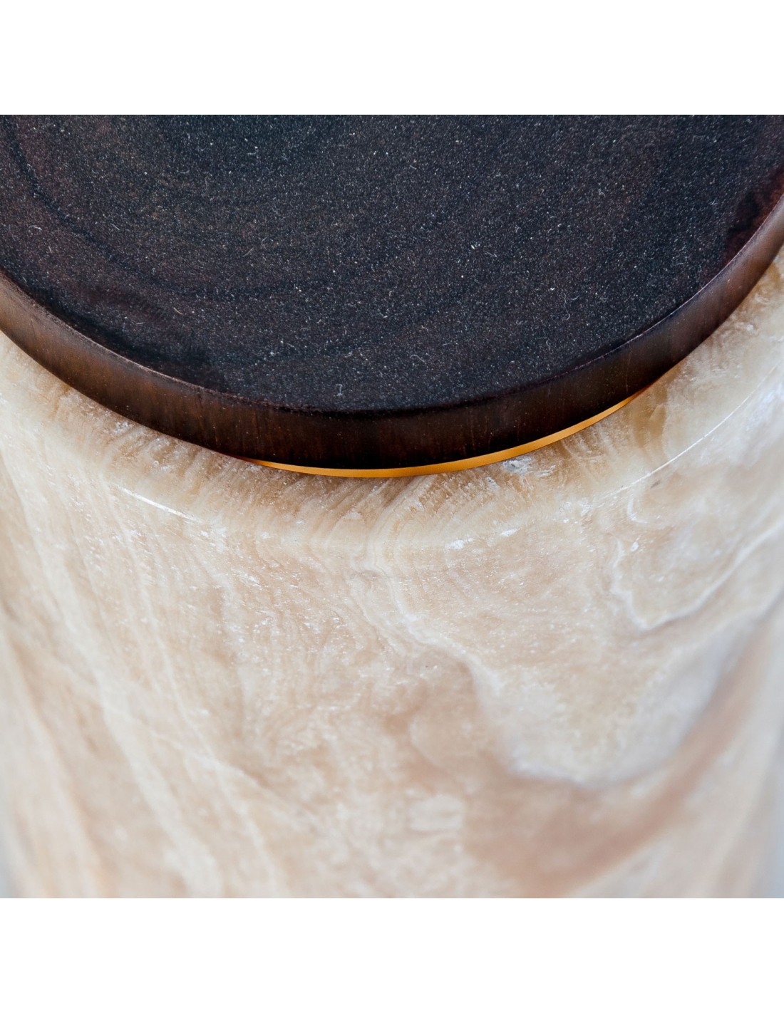 CAJA J/2 CILINDRICA DAILY, EN COLOR MARRÓN/BLANCO, DE ESTILO COLONIAL. FABRICADO EN ONIX. AL SER UN MATERIAL NATURAL, PUEDE VARIAR LA TONALIDAD DE LOS BOTES.