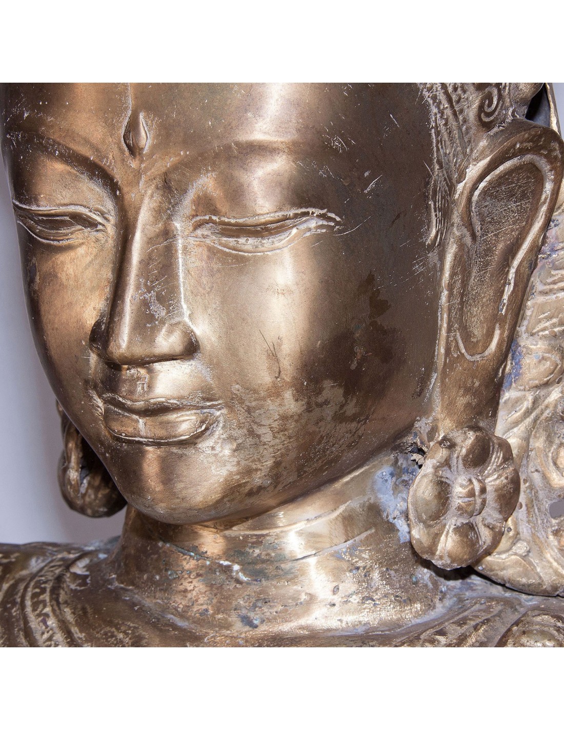 FIGURA DECORATIVA DIOSA, EN COLOR ORO, DE ESTILO ORIENTAL. FABRICADO EN BRONCE, COMBINADO CON HIERRO. PRODUCTO DESMONTABLE.