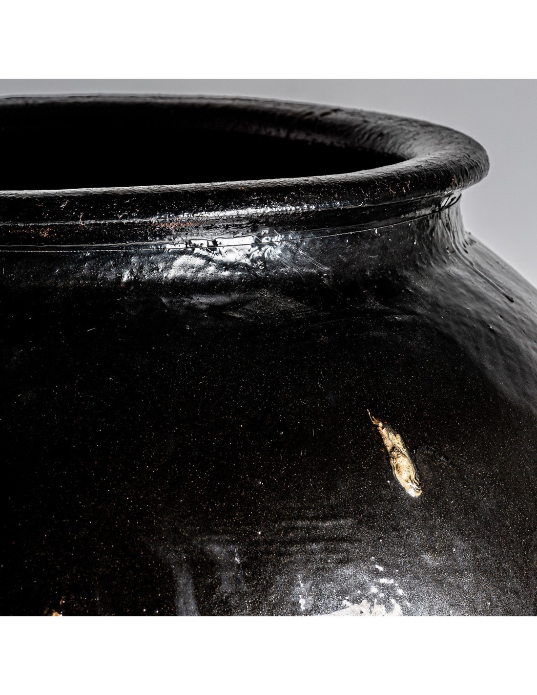 TINAJA GALACTEA, EN COLOR NEGRO, DE ESTILO ORIENTAL. FABRICADO EN CERÁMICA.