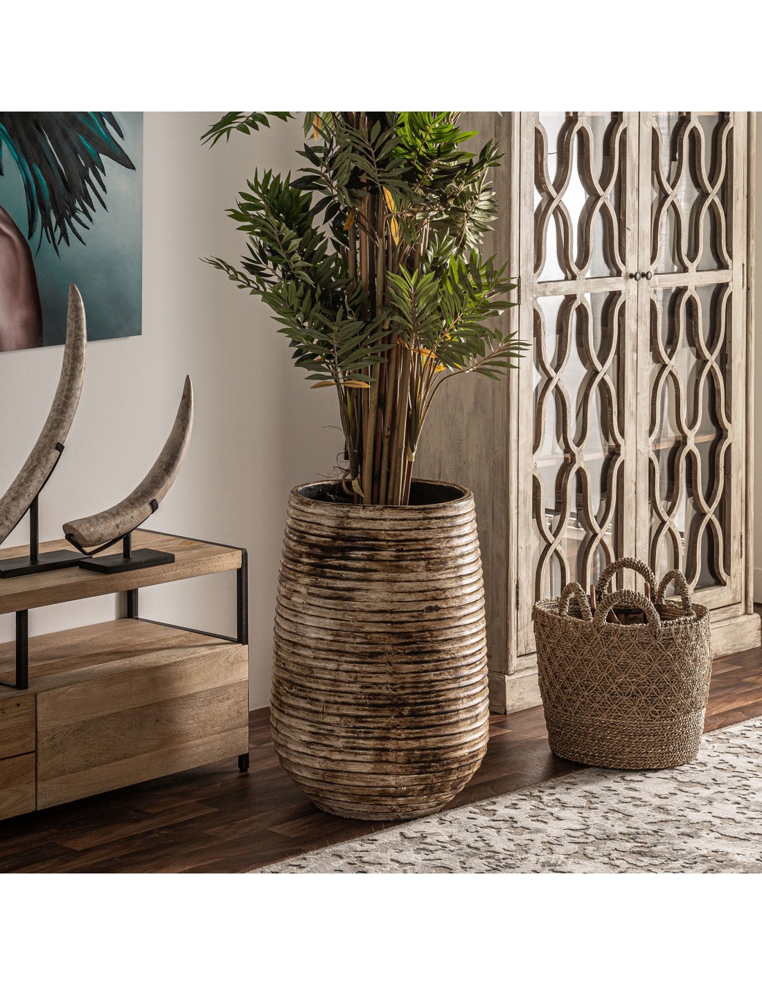 TINAJA ALEKSY, EN COLOR MARRÓN ENVEJECIDO, DE ESTILO VINTAGE. FABRICADO EN TERRACOTA.