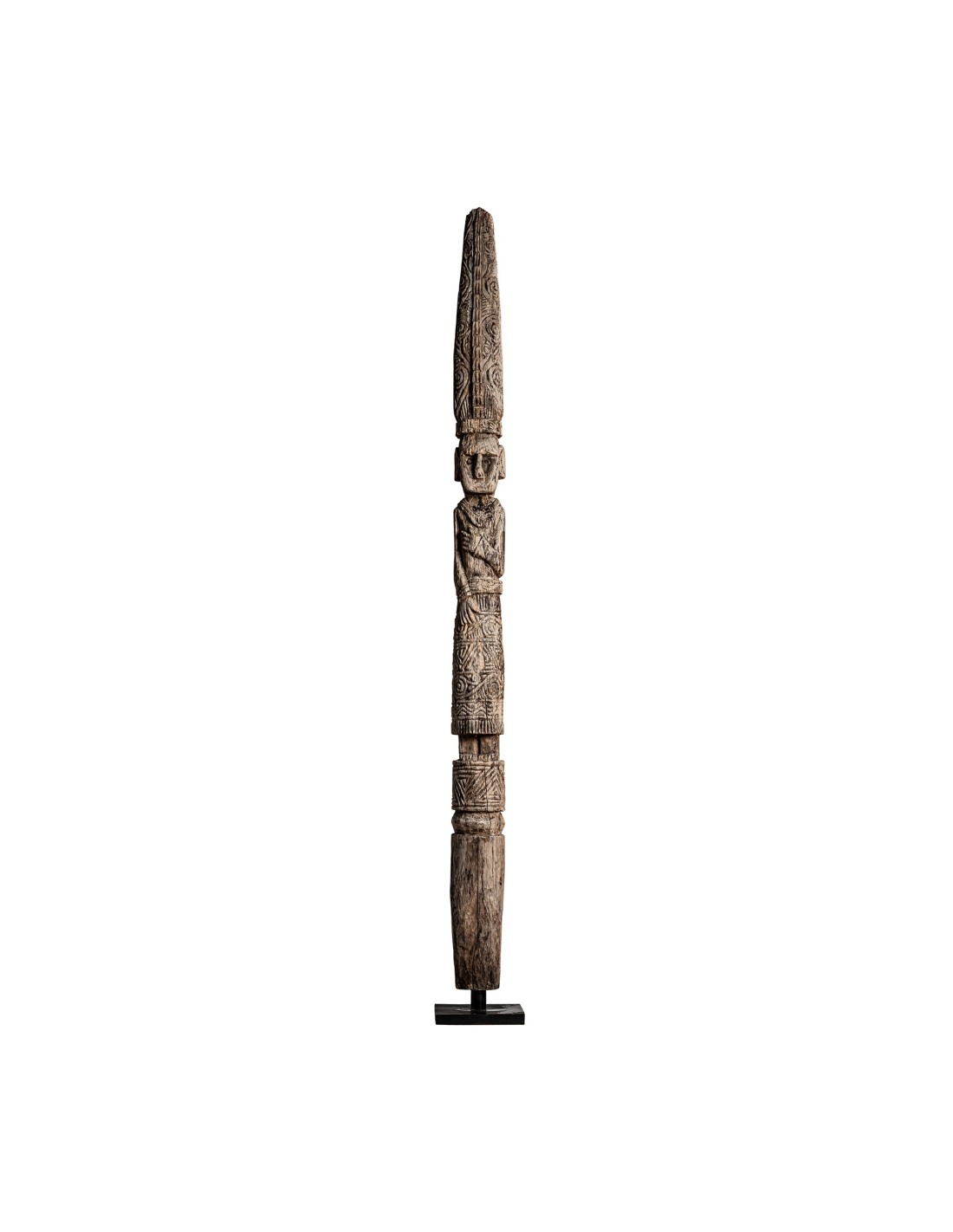 ESCULTURA, EN COLOR MARRÓN ENVEJECIDO, DE ESTILO ÉTNICO. FABRICADO EN MADERA TROPICAL.
