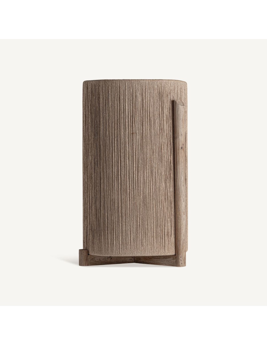 Macetero decorativo de la firma Vical Home, fabricado en madera de mango y rafia natural. Una pieza de gran formato y estilo contemporáneo, perfecta para interiores elegantes y sofisticados.