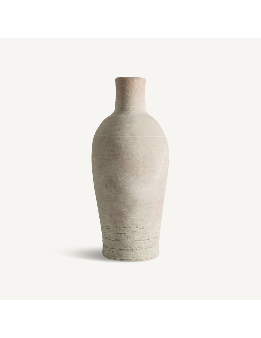 Tinaja decorativa de gran altura y estilo clásico, fabricada en arcilla con un acabado envejecido en blanco roto. Una pieza protagonista de Vical Home, ideal para dar presencia y elegancia a interiores amplios.