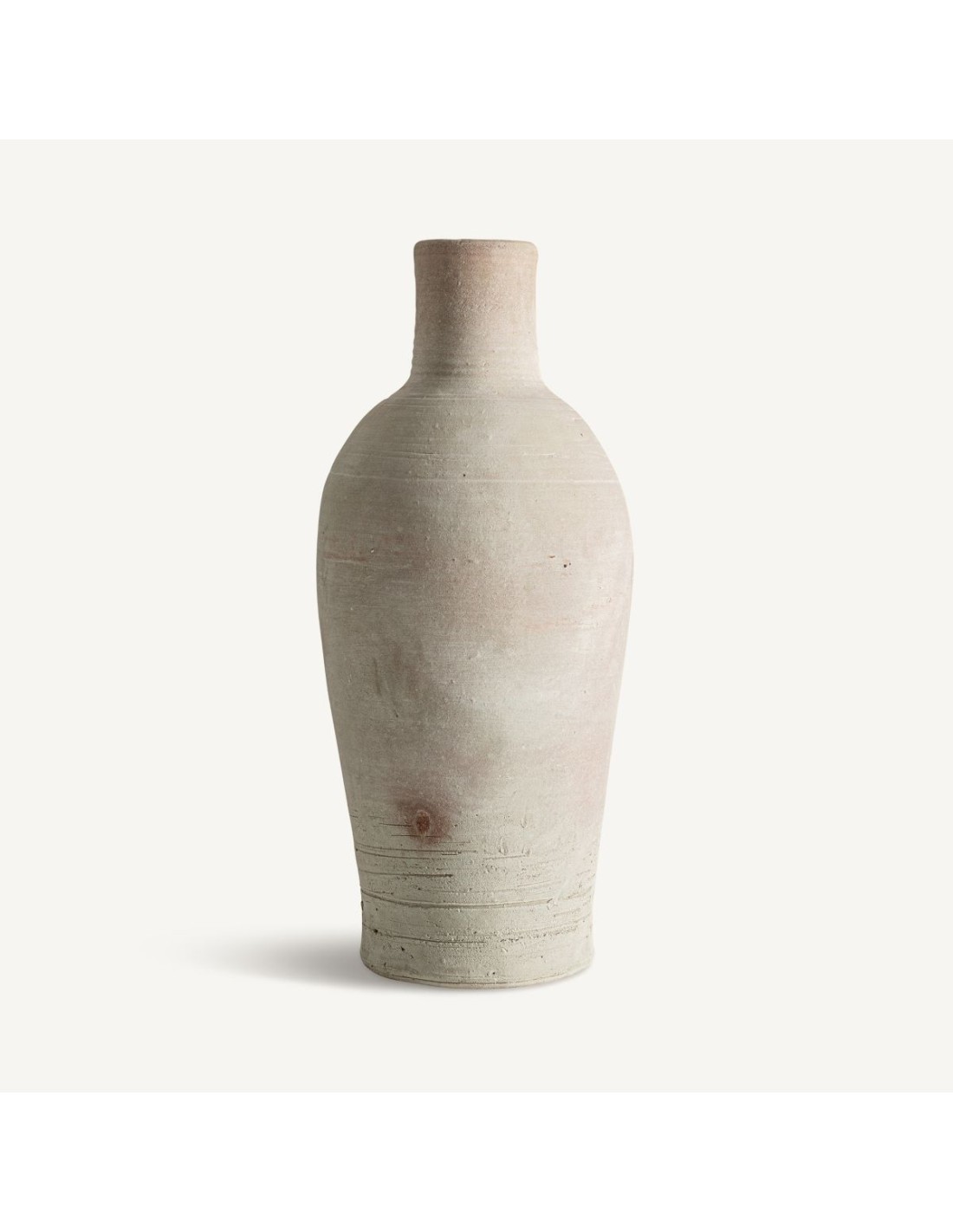 Tinaja decorativa de gran formato y estilo clásico, fabricada en arcilla blanca con acabado envejecido. Una pieza escultórica de Vical Home, ideal para entradas, salones o espacios con techos altos.