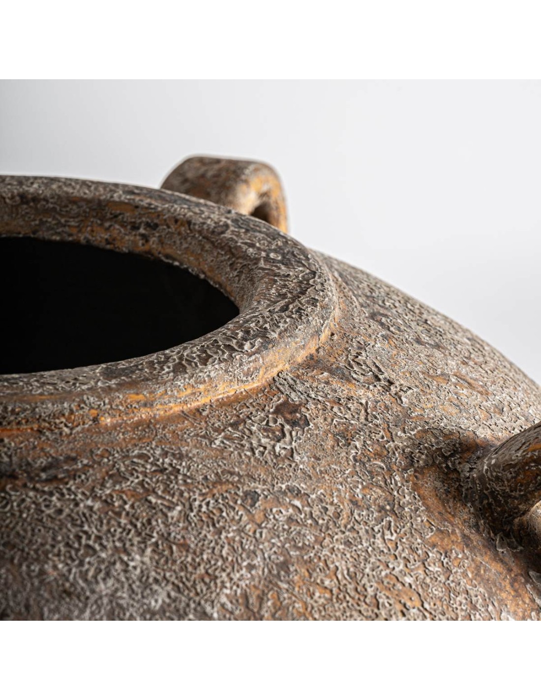Con unas dimensiones destacadas de 83 cm de alto y 67 cm de ancho y fondo, esta ánfora es perfecta para zonas amplias como recibidores, patios cubiertos o salones que buscan un punto focal con presencia y textura.