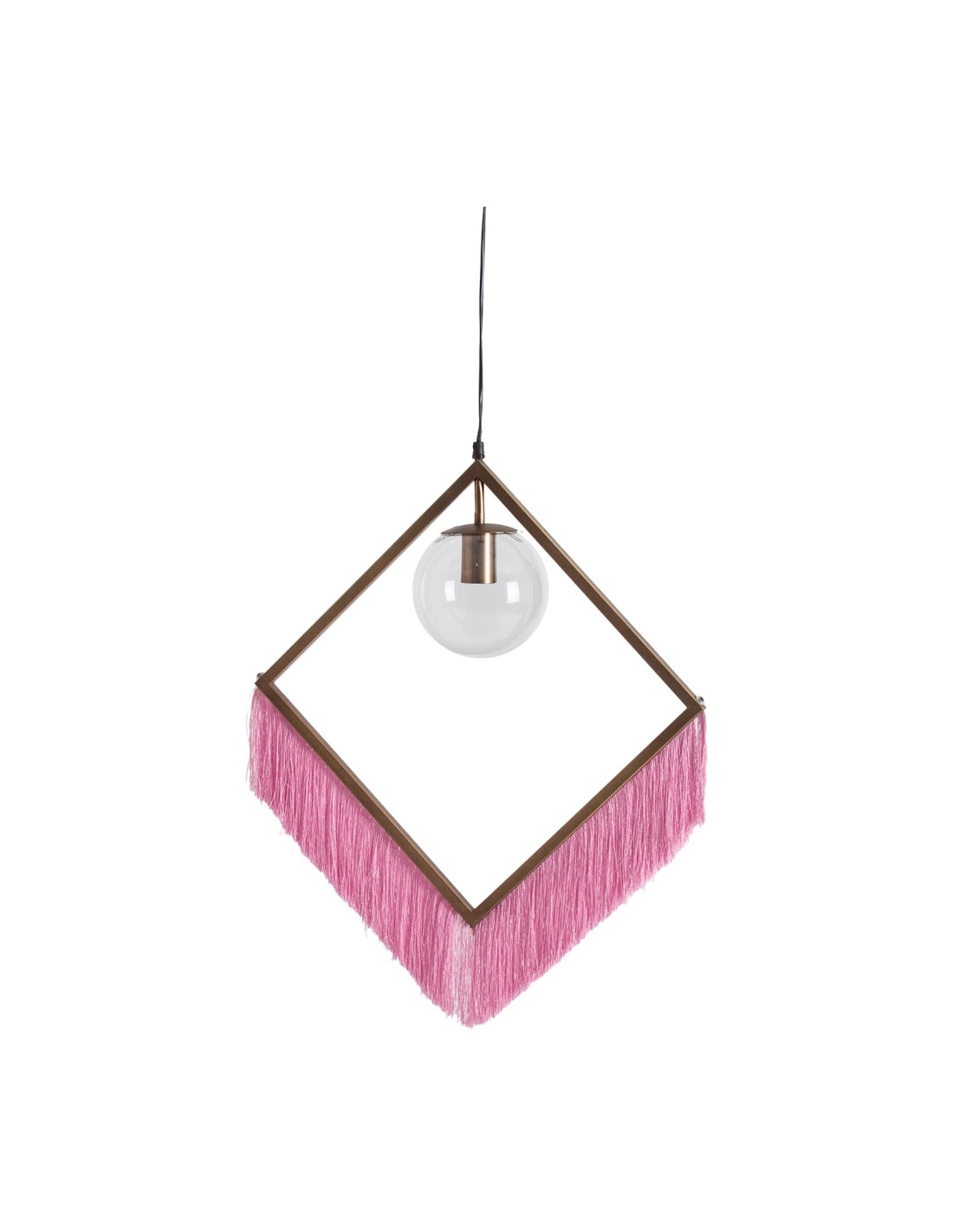 LÁMPARA DE COLGAR BULEVARD, EN COLOR ROSA, DE ESTILO SHABBY CHIC. FABRICADO EN LATÓN, COMBINADO CON CRISTAL Y POLIÉSTER.