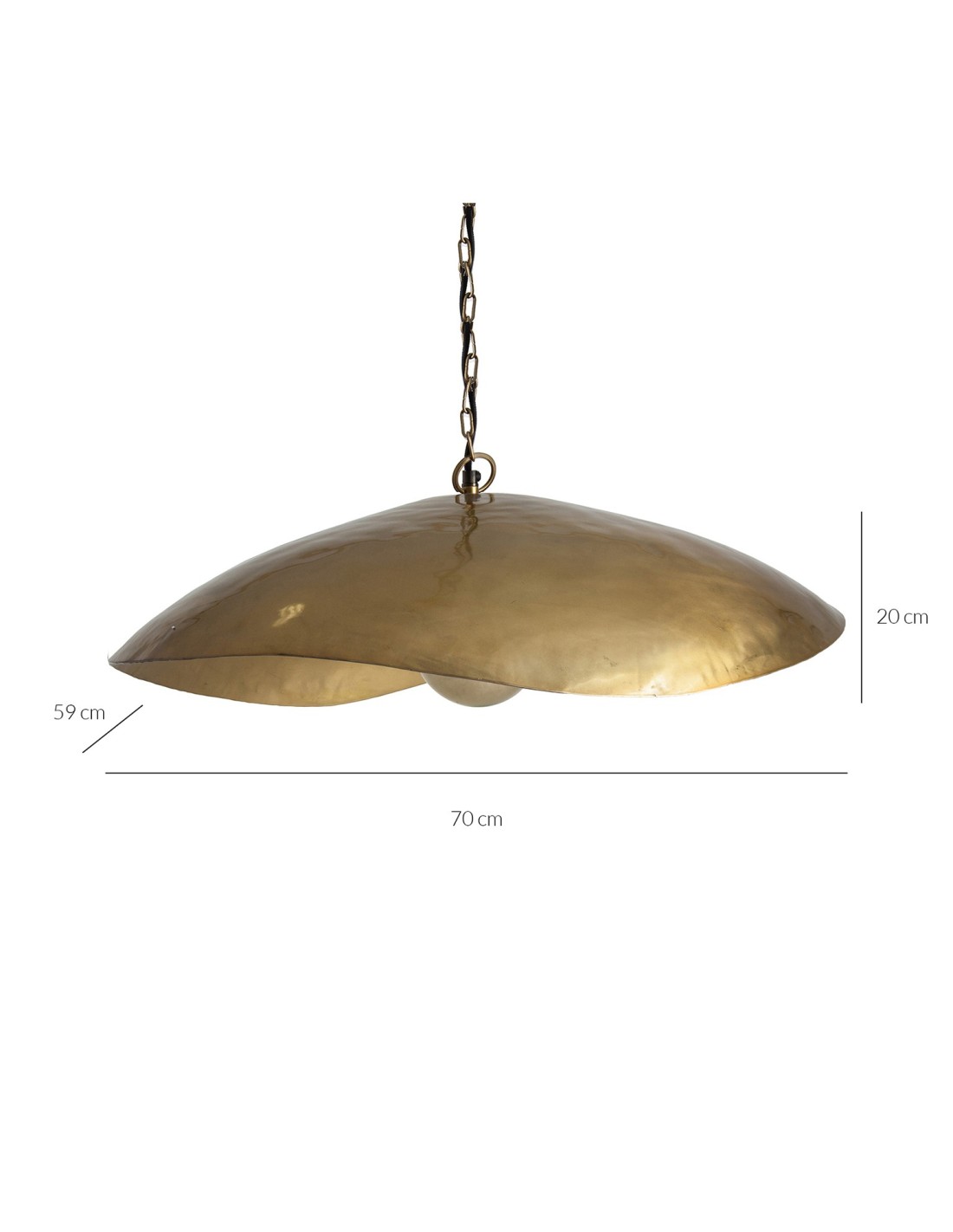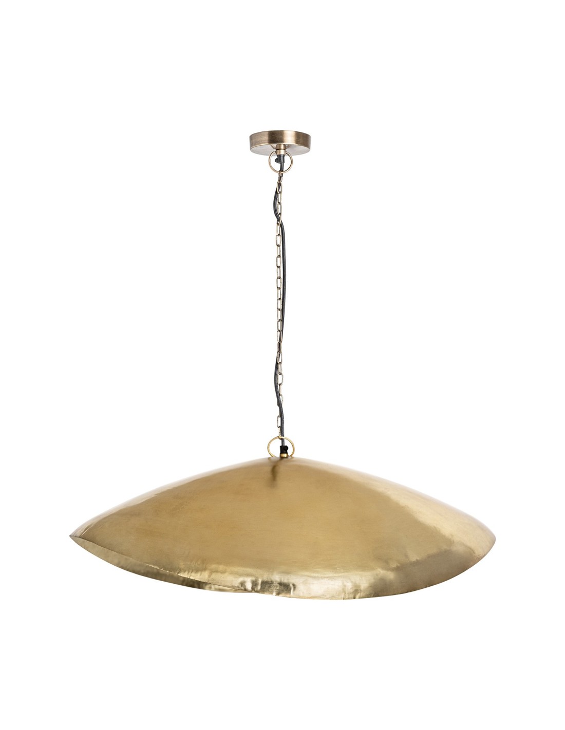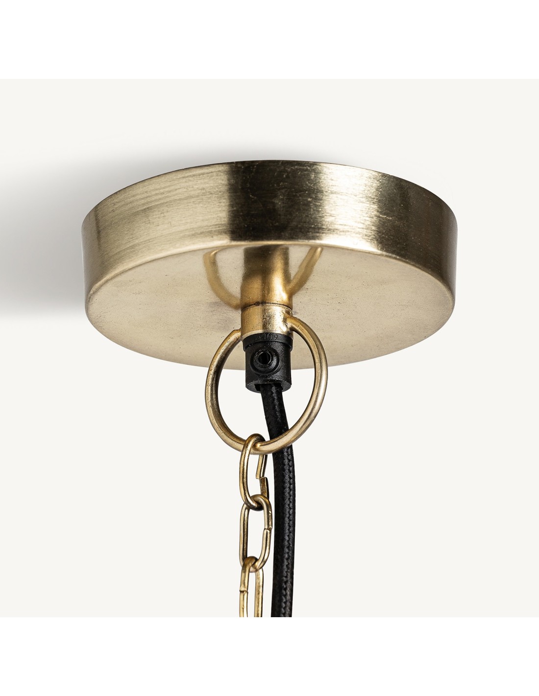 LÁMPARA DE COLGAR REDONDA, EN COLOR ORO, DE ESTILO ECLÉCTICO. FABRICADO EN HIERRO.