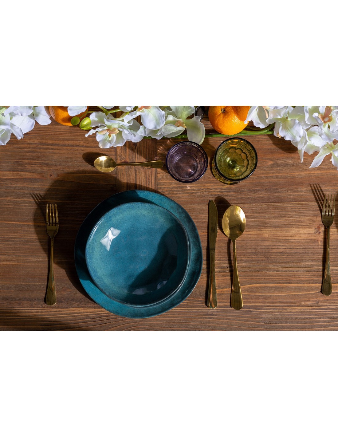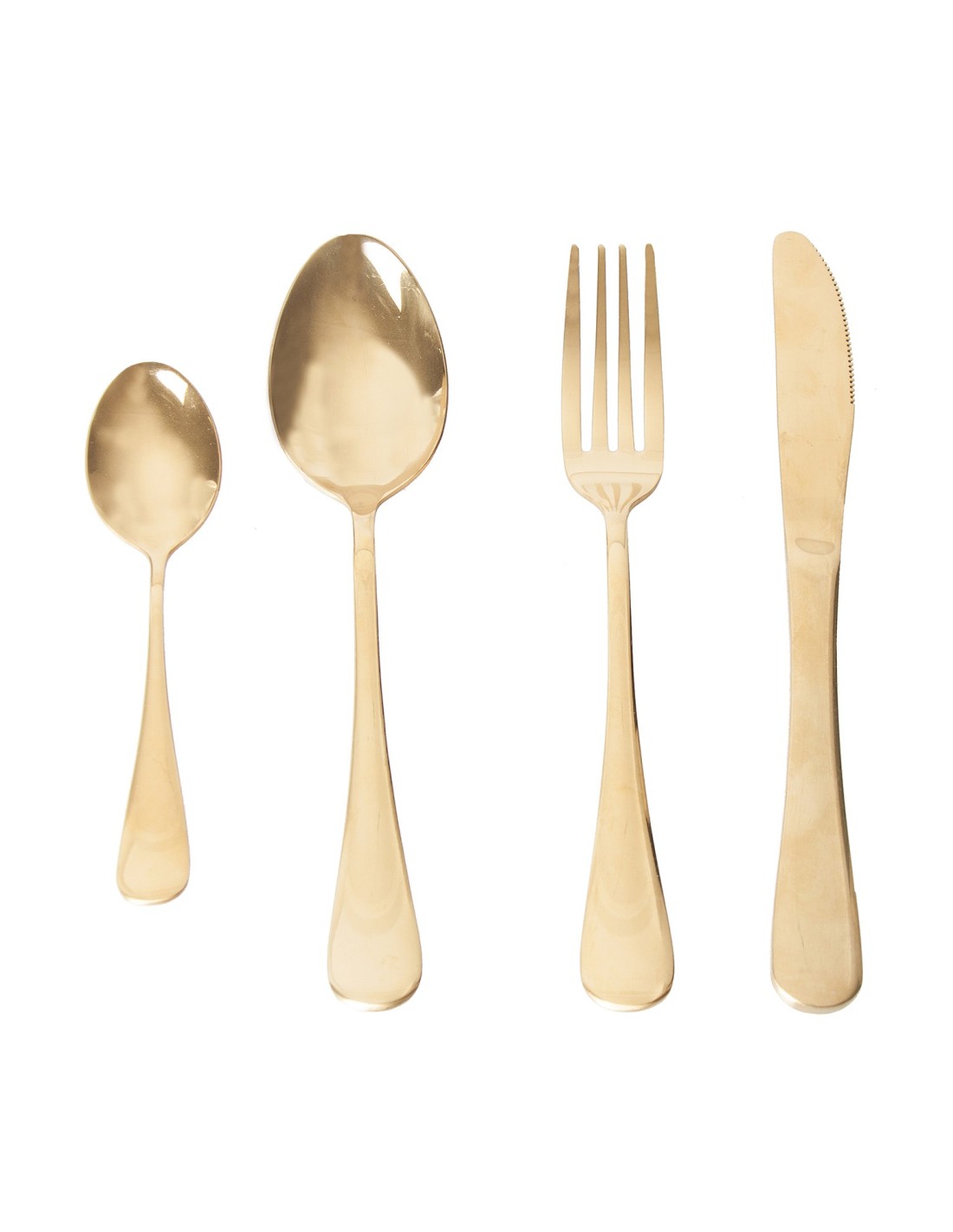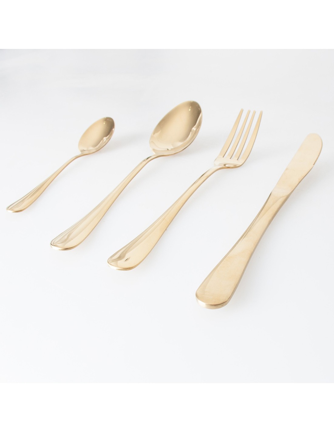 CUBIERTOS J/24, EN COLOR ORO, DE ESTILO CLÁSICO. FABRICADO EN ACERO.