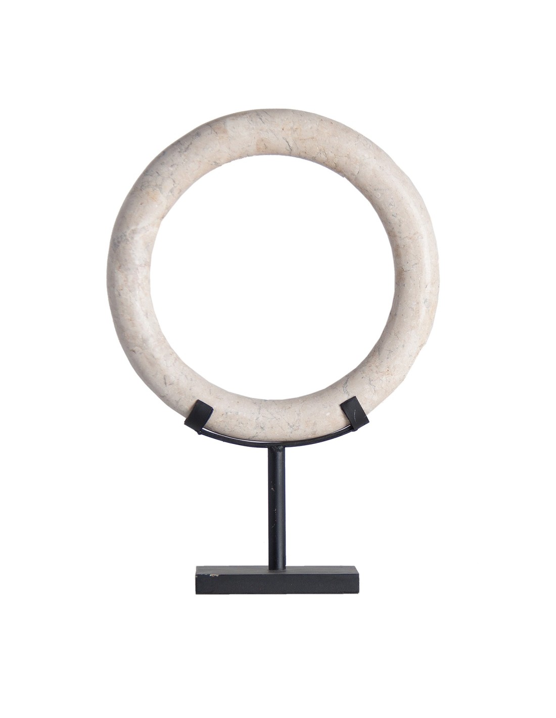 FIGURA DECORATIVA REDONDA, EN COLOR BLANCO ROTO, DE ESTILO NÓRDICO. FABRICADO EN MÁRMOL. PRODUCTO DESMONTABLE.