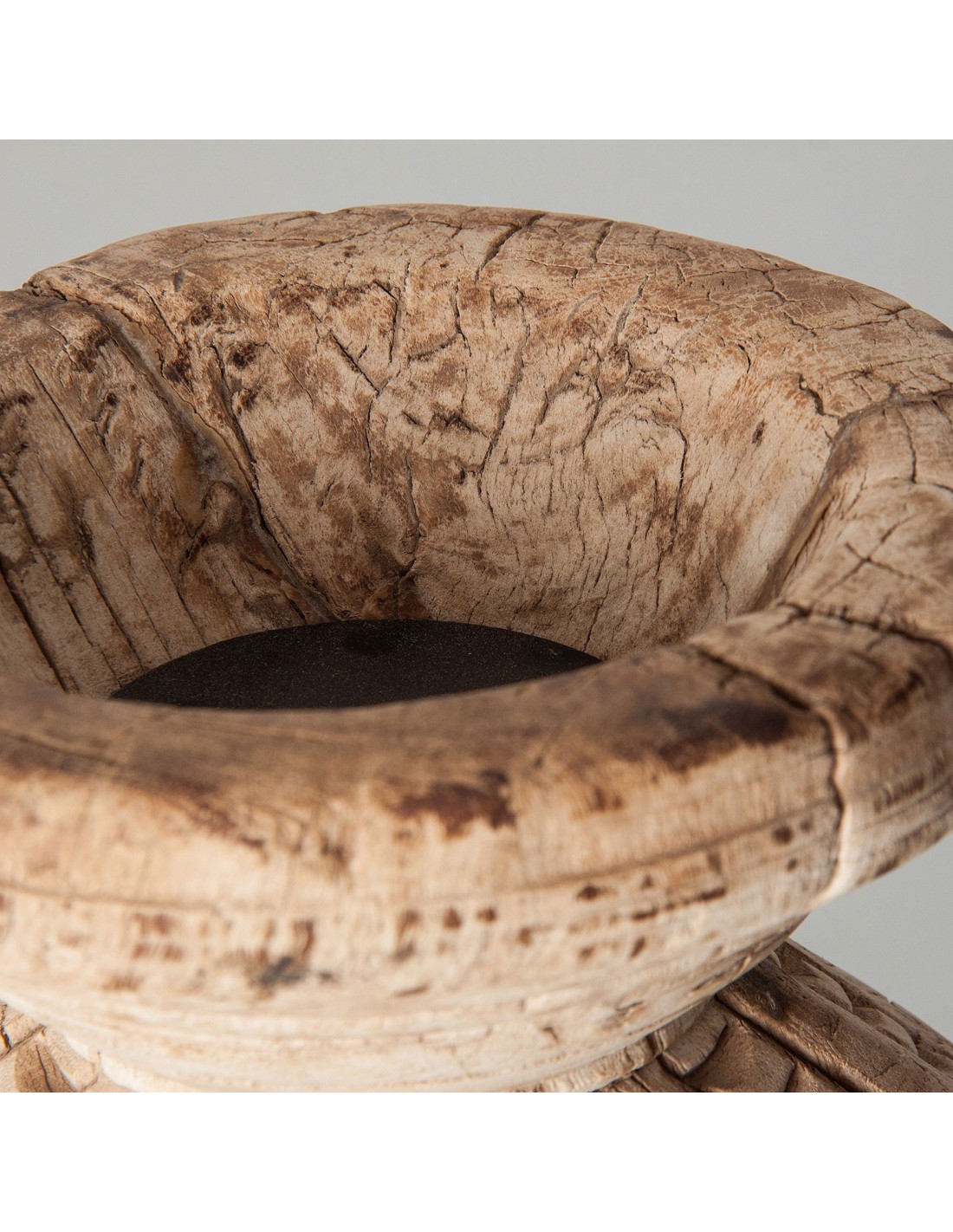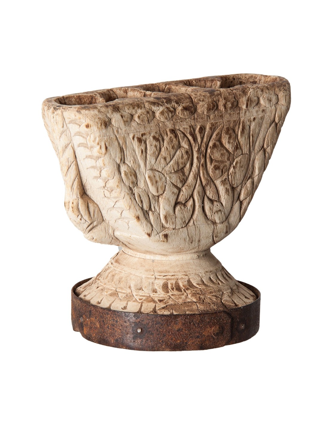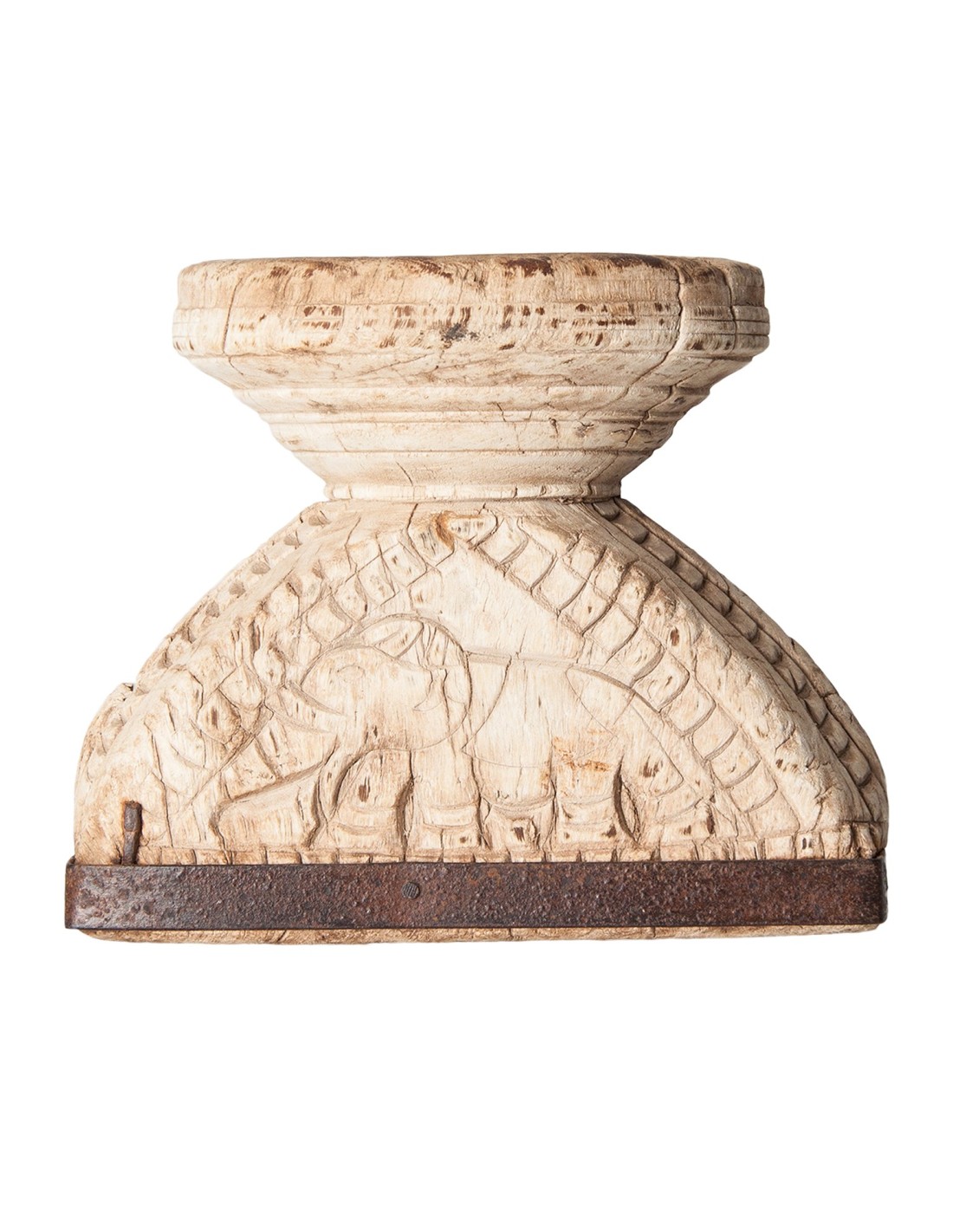 PORTAVELA SEMICIRCULAR, EN COLOR BLANCO ROTO ENVEJECIDO, DE ESTILO ÉTNICO. FABRICADO EN MADERA DE TEKA, COMBINADO CON HIERRO.
