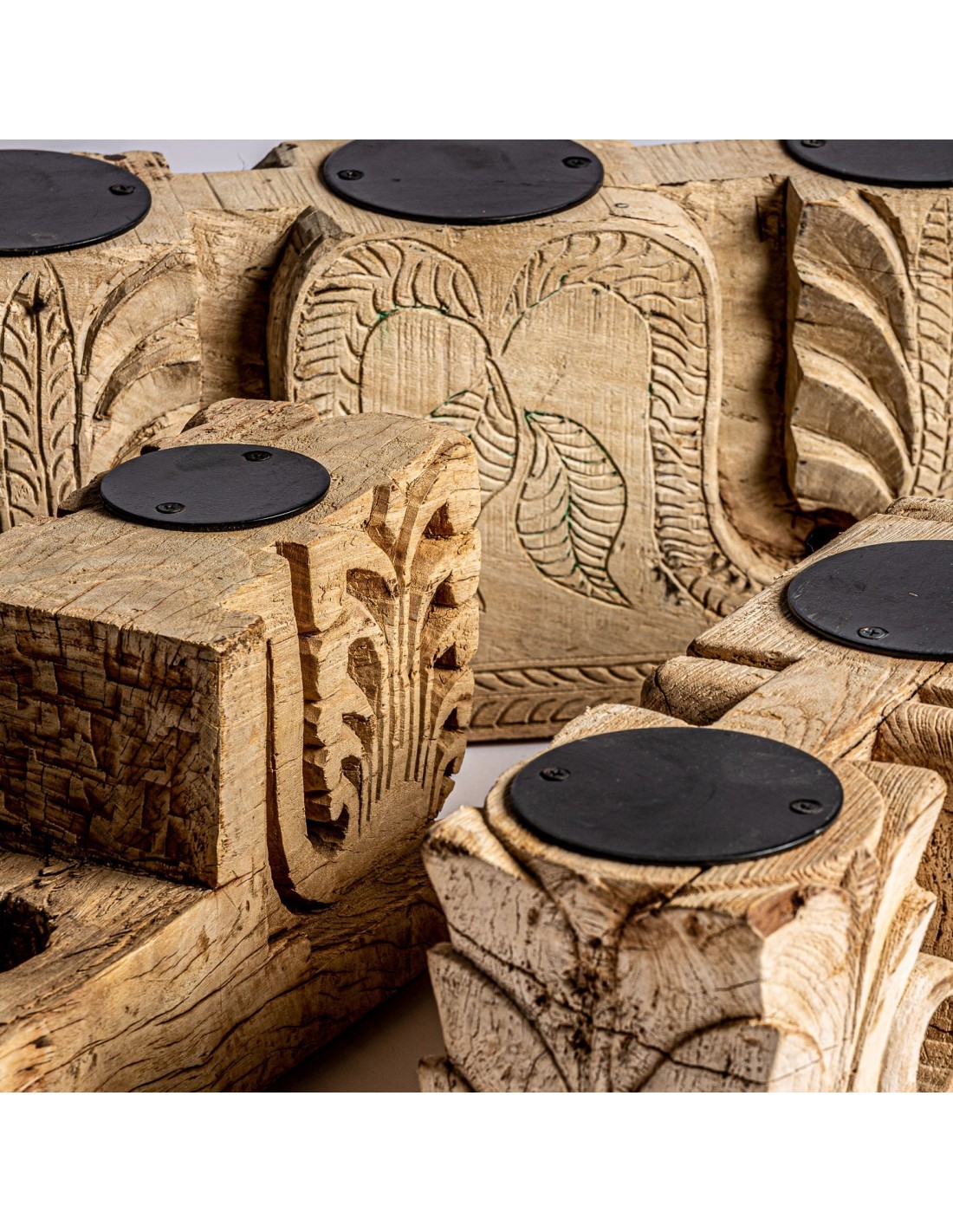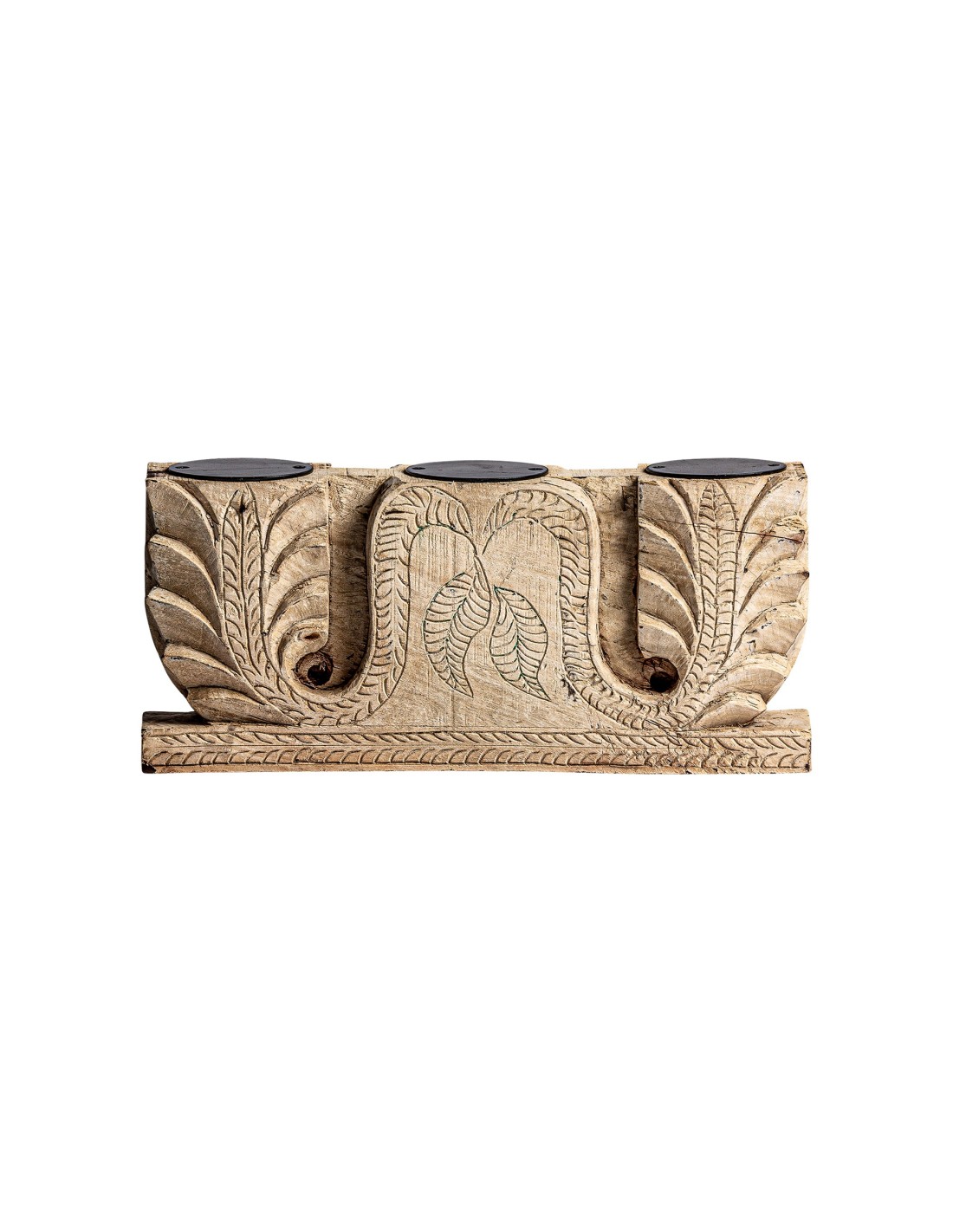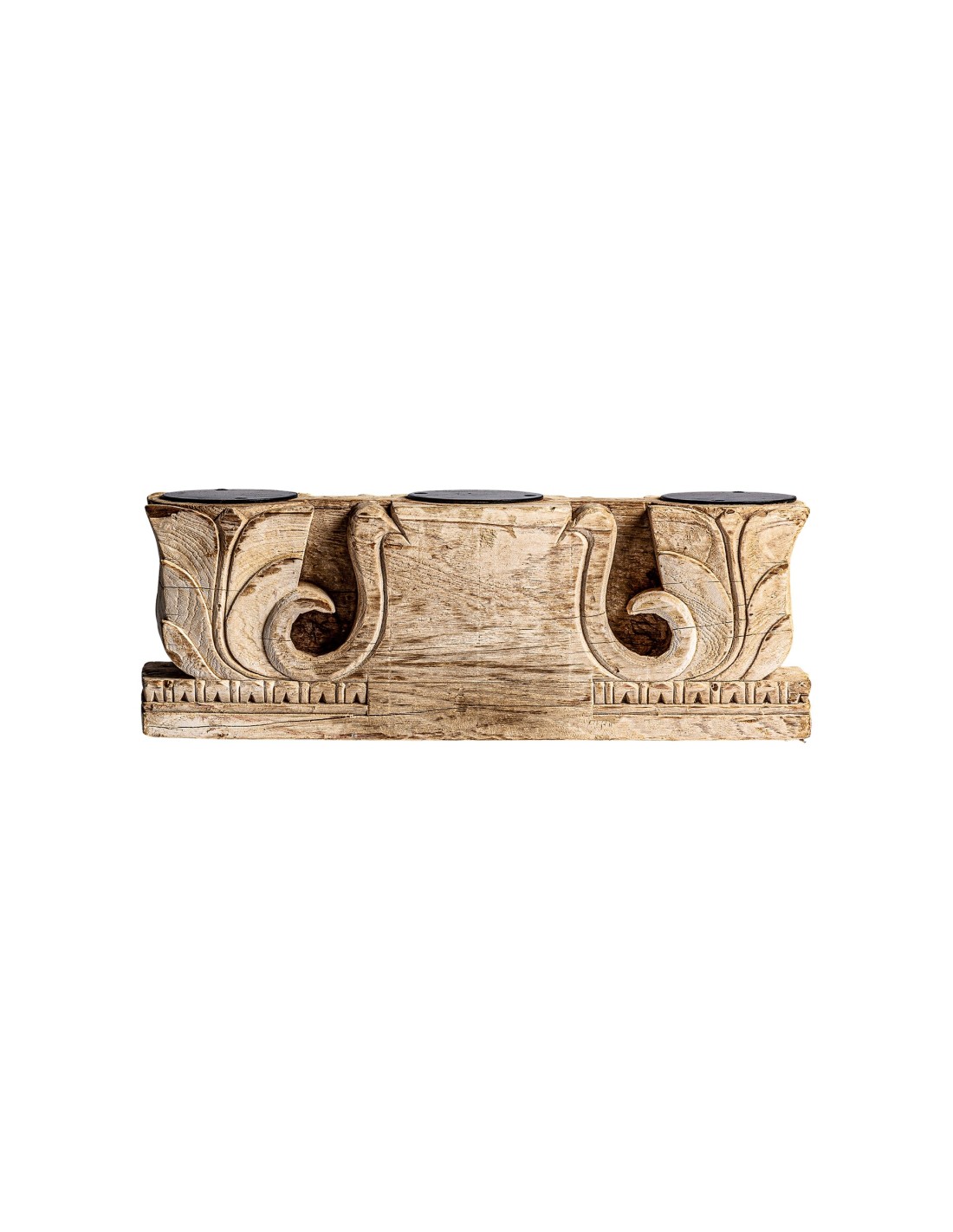 PORTAVELA SURT ARGEEN, EN COLOR MARRÓN ENVEJECIDO, DE ESTILO ÉTNICO. FABRICADO EN MADERA DE TEKA, COMBINADO CON HIERRO.