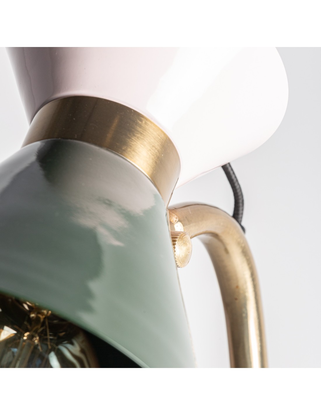 LÁMPARA DE PIE, EN COLOR VERDE/ORO, DE ESTILO ART DECO. FABRICADO EN HIERRO, COMBINADO CON LATÓN.