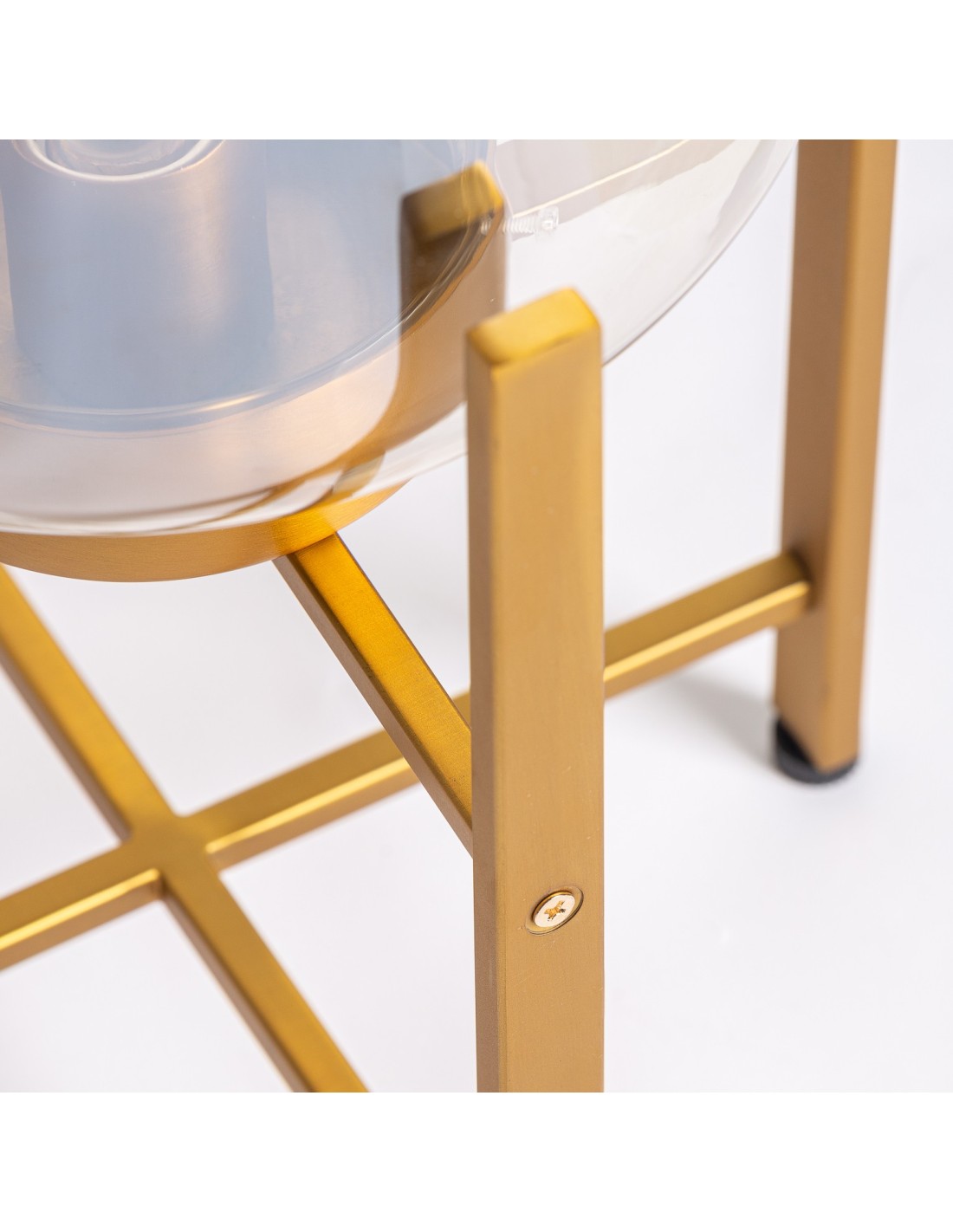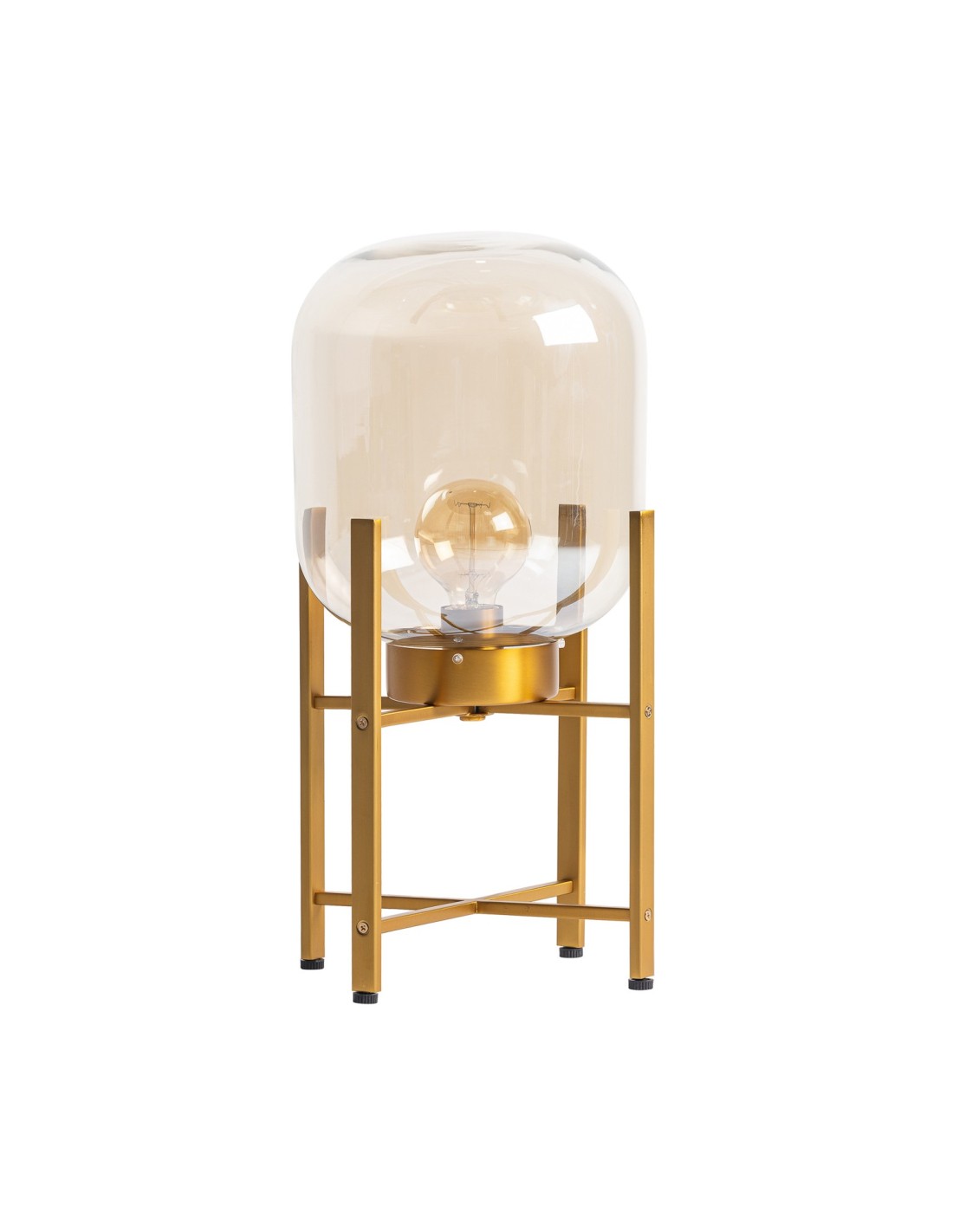 LÁMPARA DE SOBREMESA, EN COLOR ORO, DE ESTILO ART DECO. FABRICADO EN LATÓN, COMBINADO CON CRISTAL. PRODUCTO DESMONTABLE.