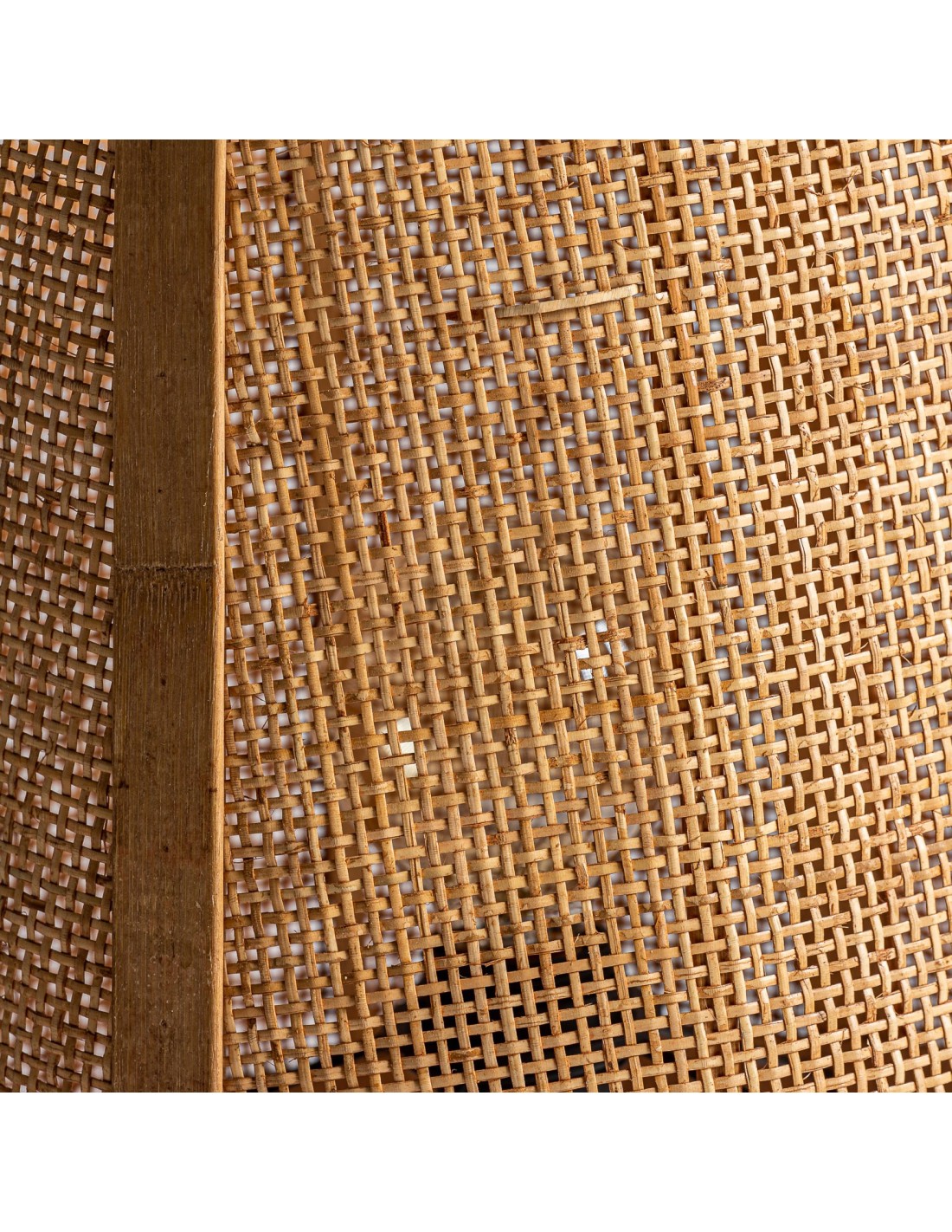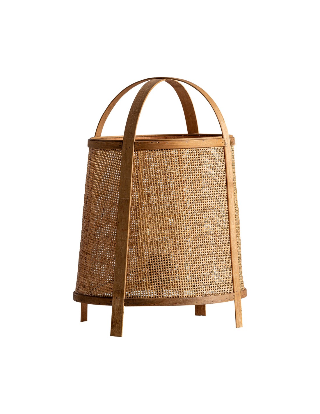 LÁMPARA DE SOBREMESA KIRI, EN COLOR MARRÓN, DE ESTILO CONTEMPORÁNEO. FABRICADO EN RATÁN, COMBINADO CON LINO Y BAMBÚ.