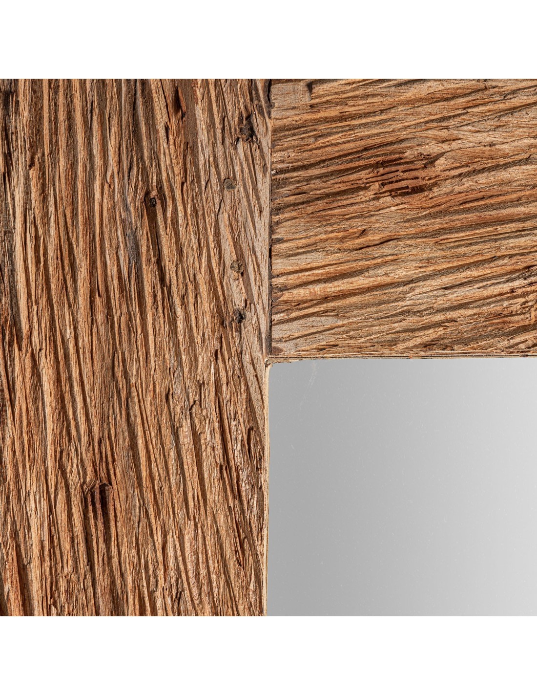 ESPEJO, EN COLOR NATURAL TALLADO, DE ESTILO CONTEMPORÁNEO. FABRICADO EN MADERA DURIAN, COMBINADO CON ESPEJO.