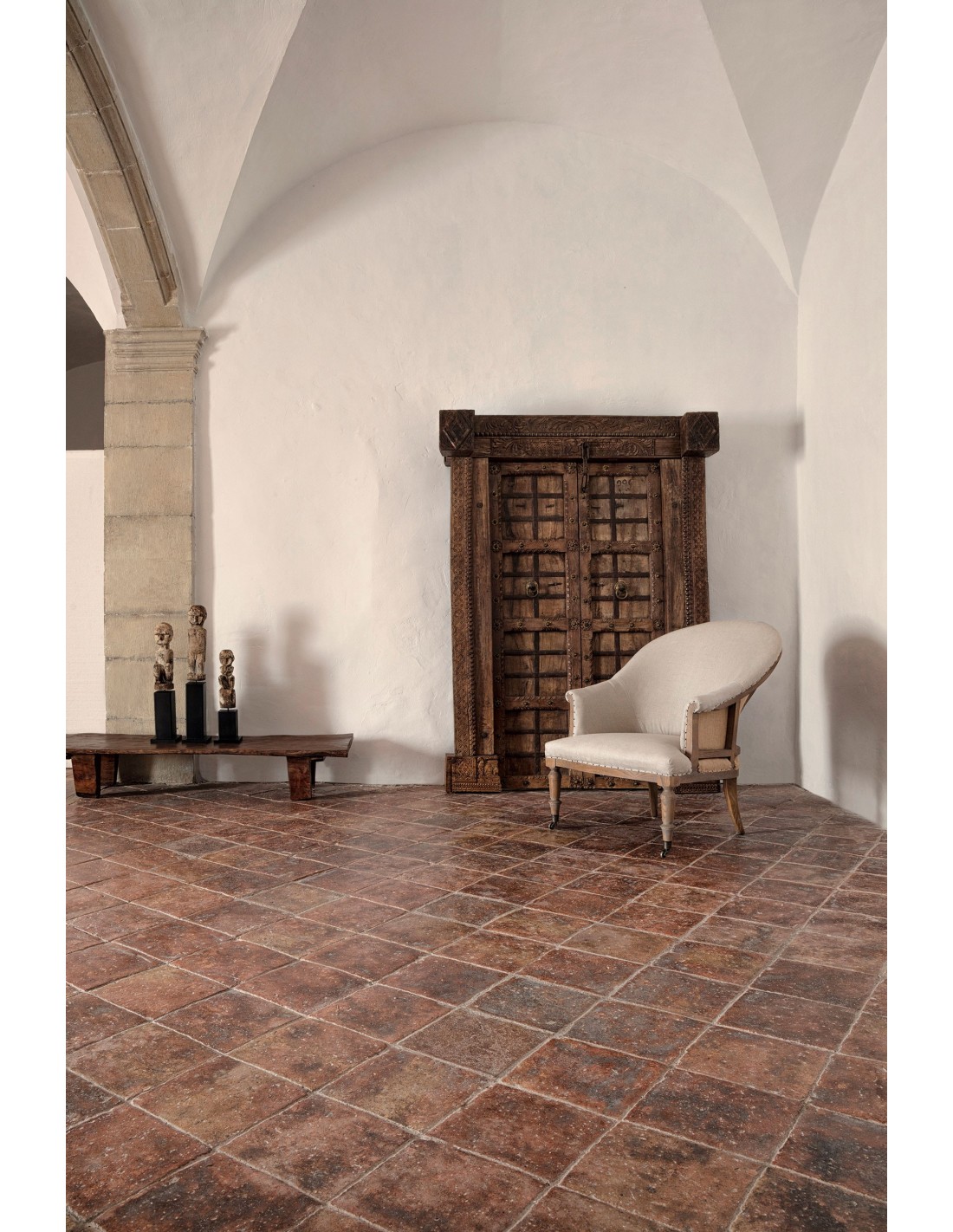 FIGURA DECORATIVA, EN COLOR NEGRO/NATURAL ENVEJECIDO, DE ESTILO ORIENTAL. FABRICADO EN MADERA DE MANGO, COMBINADO CON HIERRO.