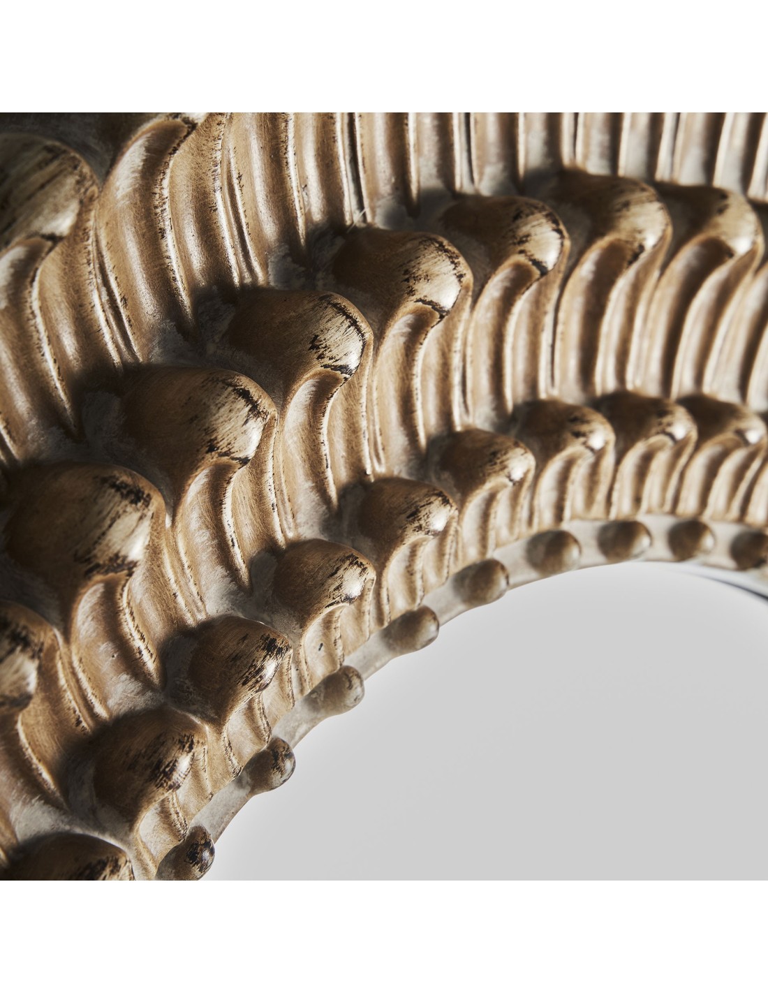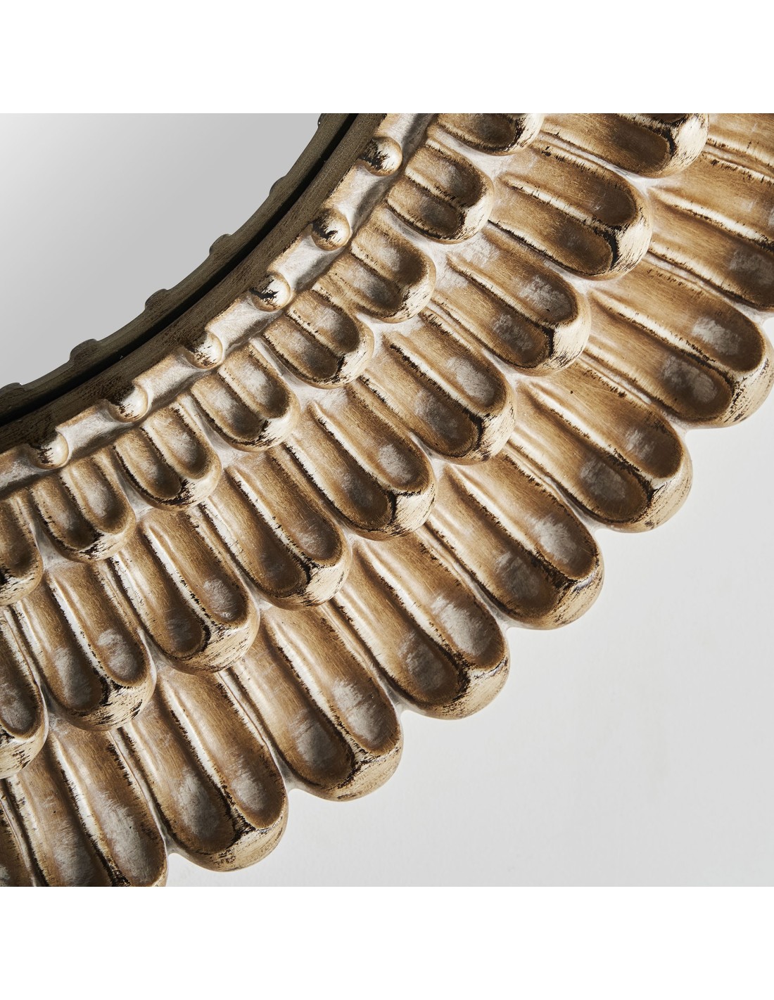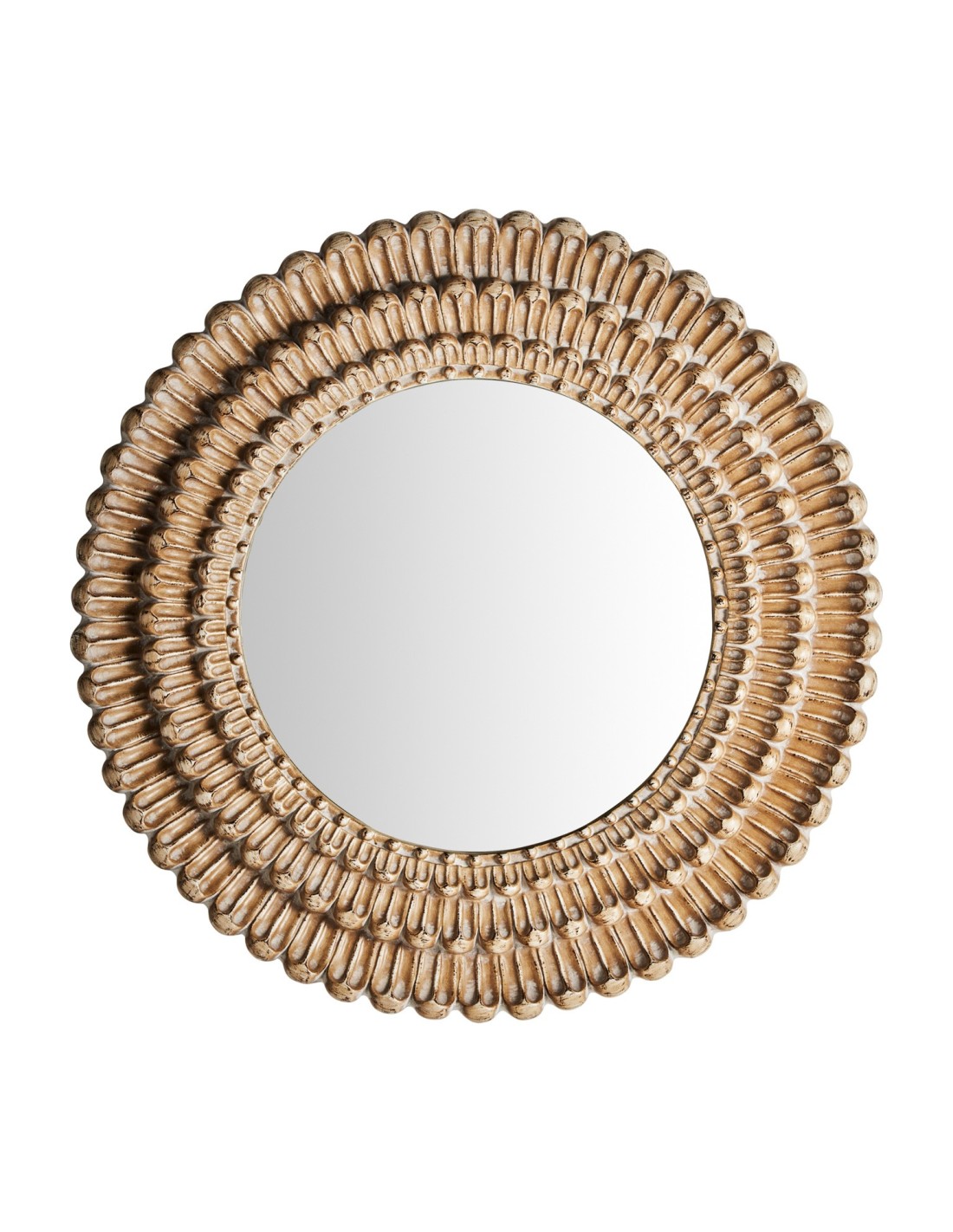 ESPEJO REDONDO, EN COLOR ORO DECAPADO, DE ESTILO ART DECO. FABRICADO EN ESPEJO.
