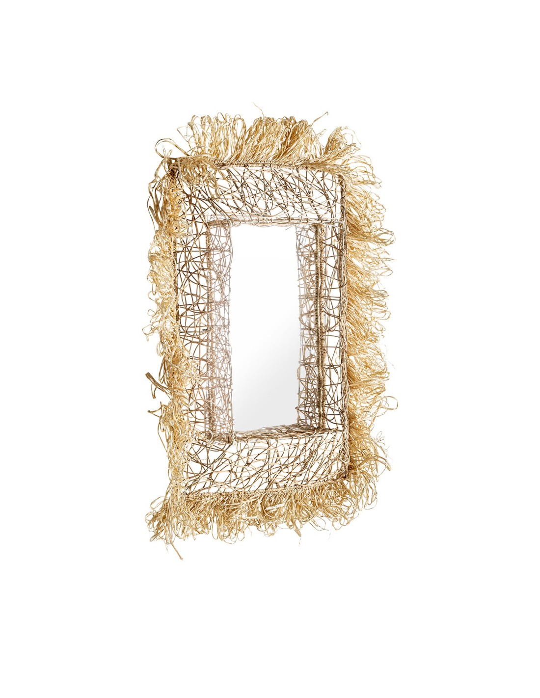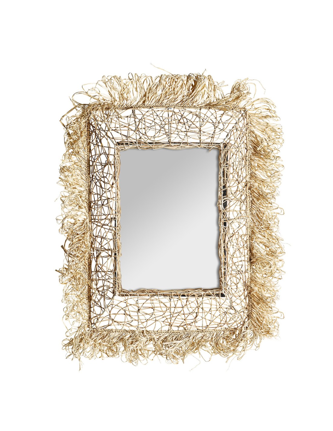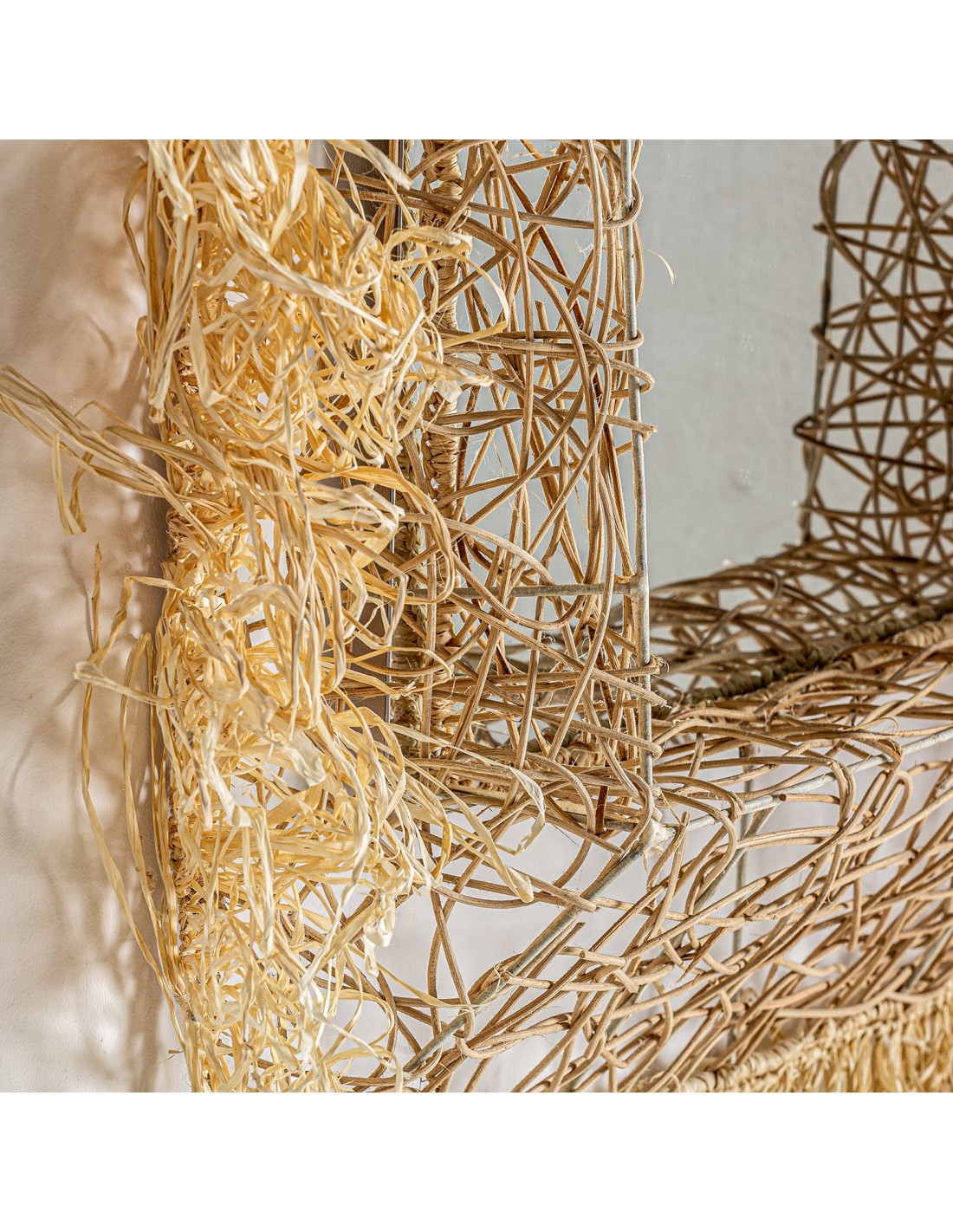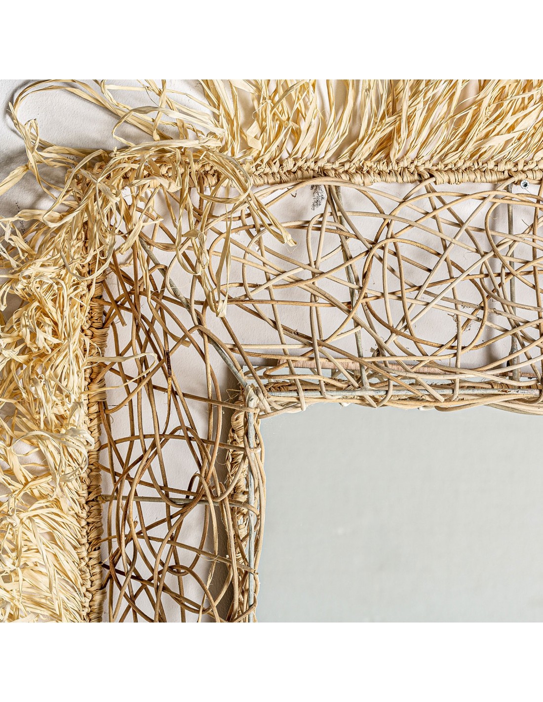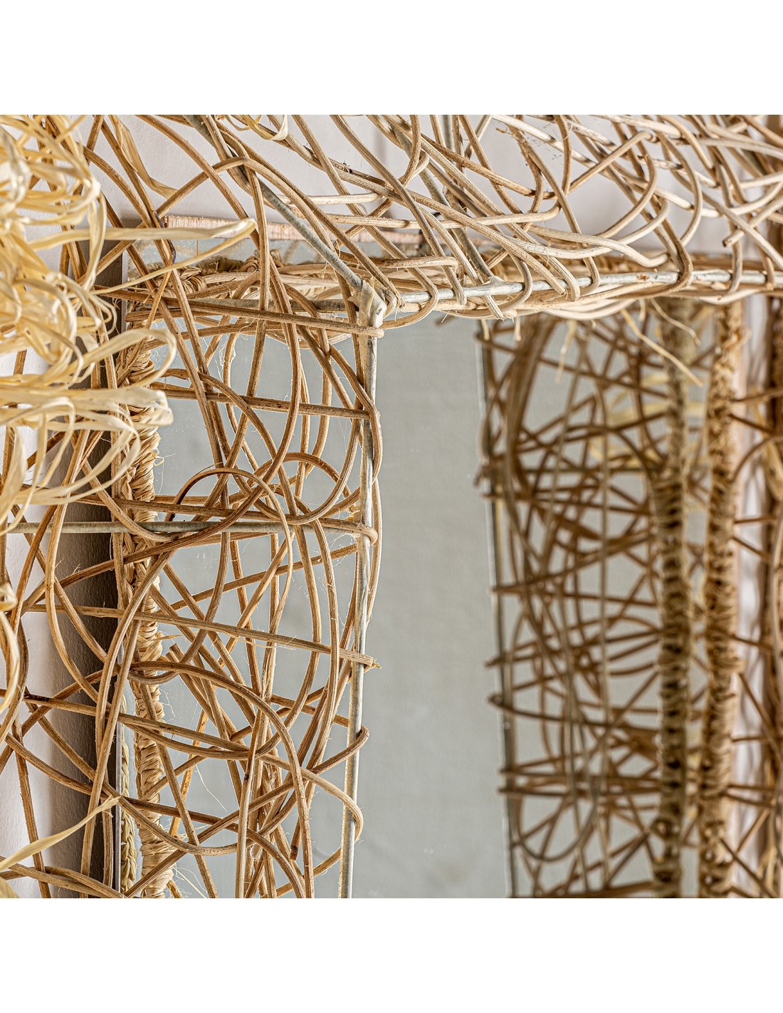 ESPEJO NAHIR, EN COLOR MARRÓN, DE ESTILO ÉTNICO. FABRICADO EN FIBRA NATURAL, COMBINADO CON BAMBÚ.