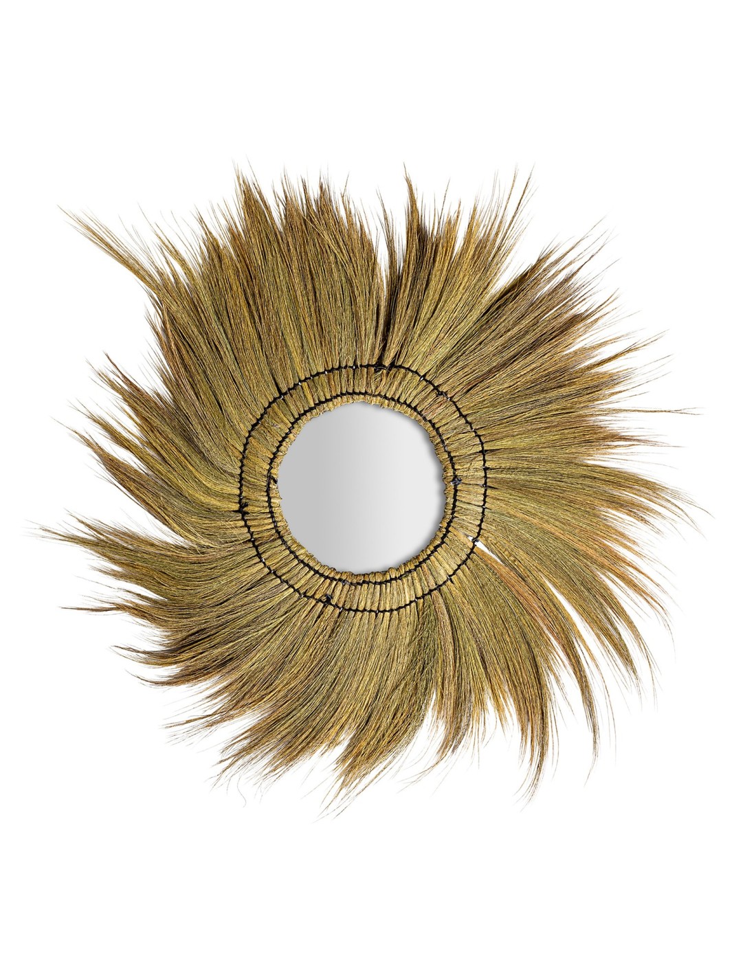 ESPEJO NAZOMBE, EN COLOR MARRÓN, DE ESTILO ÉTNICO. FABRICADO EN FIBRA NATURAL, COMBINADO CON ESPEJO.