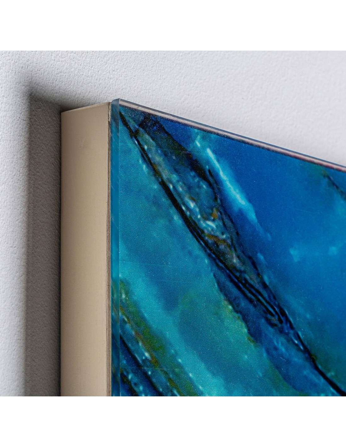 LÁMINA NAURU, EN COLOR TURQUESA IMPRESO, DE ESTILO ART DECO. FABRICADO EN METACRILATO.