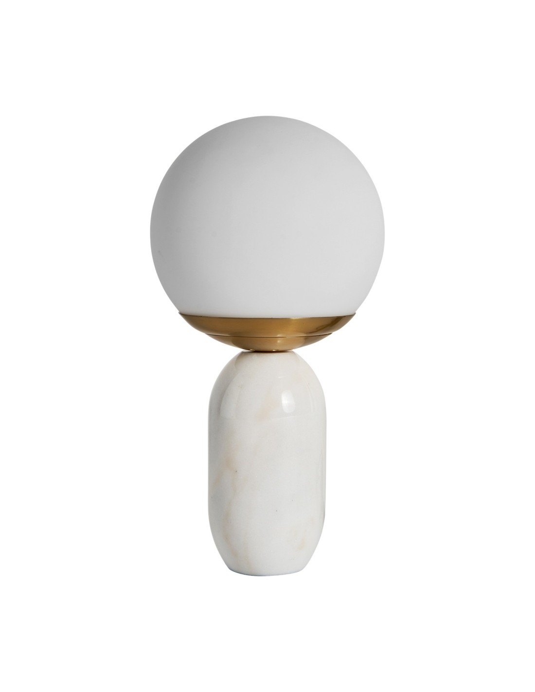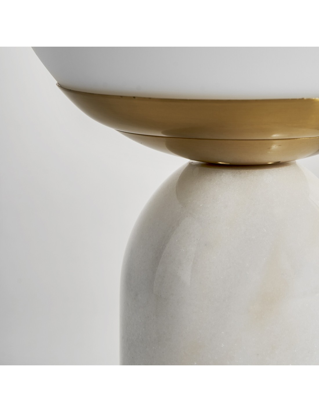 LÁMPARA DE SOBREMESA, EN COLOR BLANCO/ORO, DE ESTILO ART DECO. FABRICADO EN ACERO, COMBINADO CON VIDRIO. PRODUCTO DESMONTABLE.