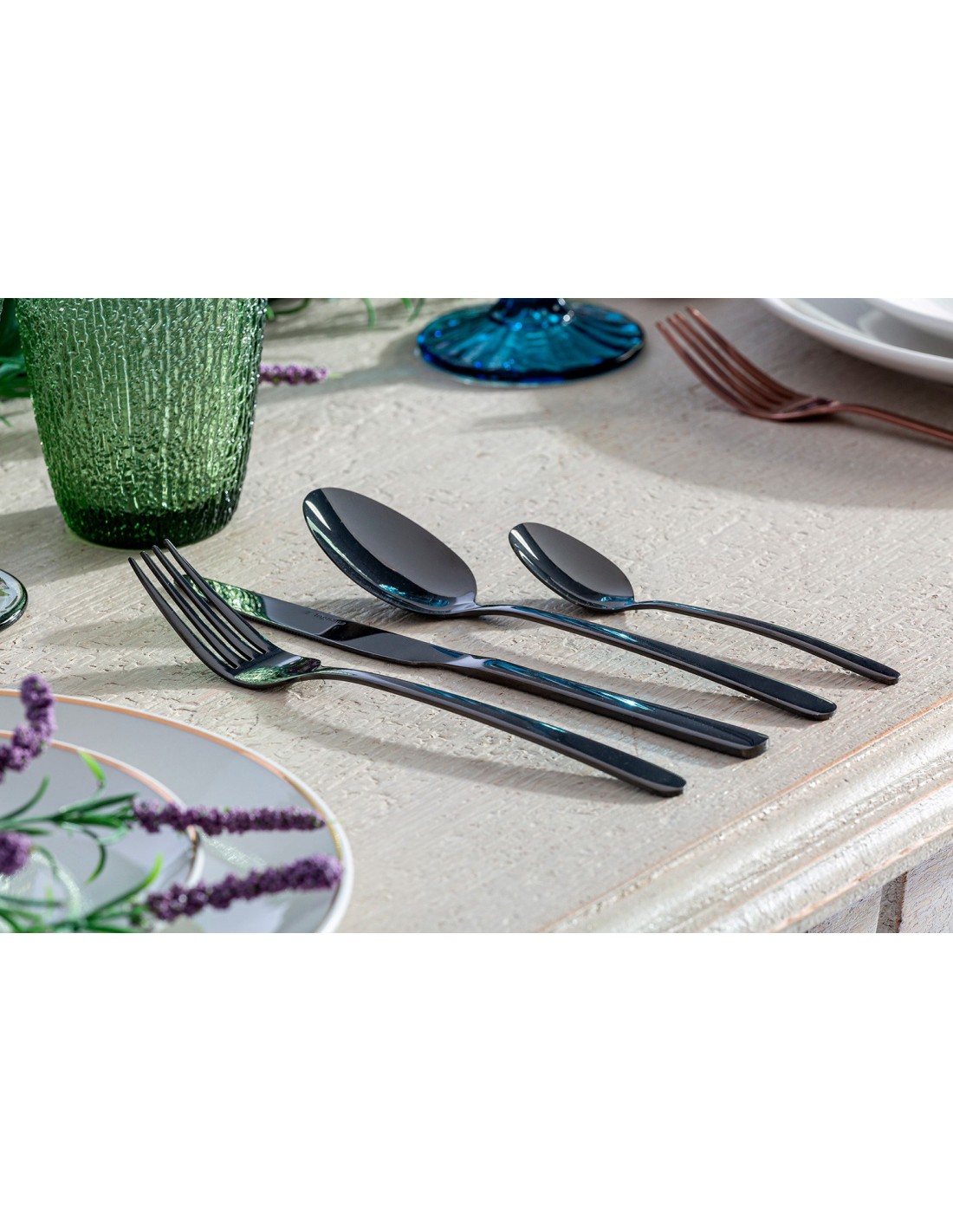 CUBIERTOS J/24, EN COLOR PLATA, DE ESTILO CONTEMPORÁNEO. FABRICADO EN ACERO.