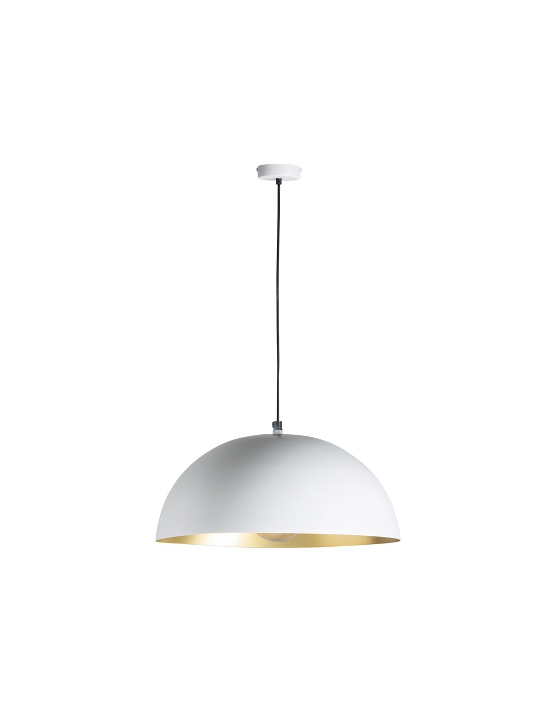LÁMPARA DE COLGAR, EN COLOR BLANCO/ORO, DE ESTILO ART DECO. FABRICADO EN HIERRO. PRODUCTO EXTENSIBLE.