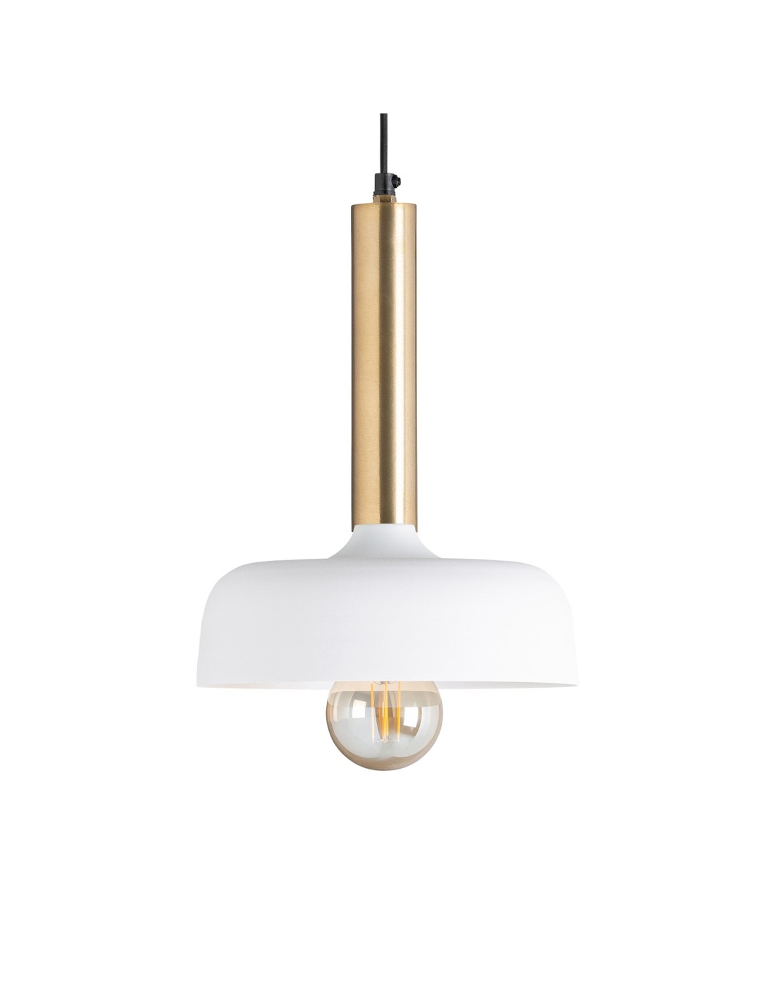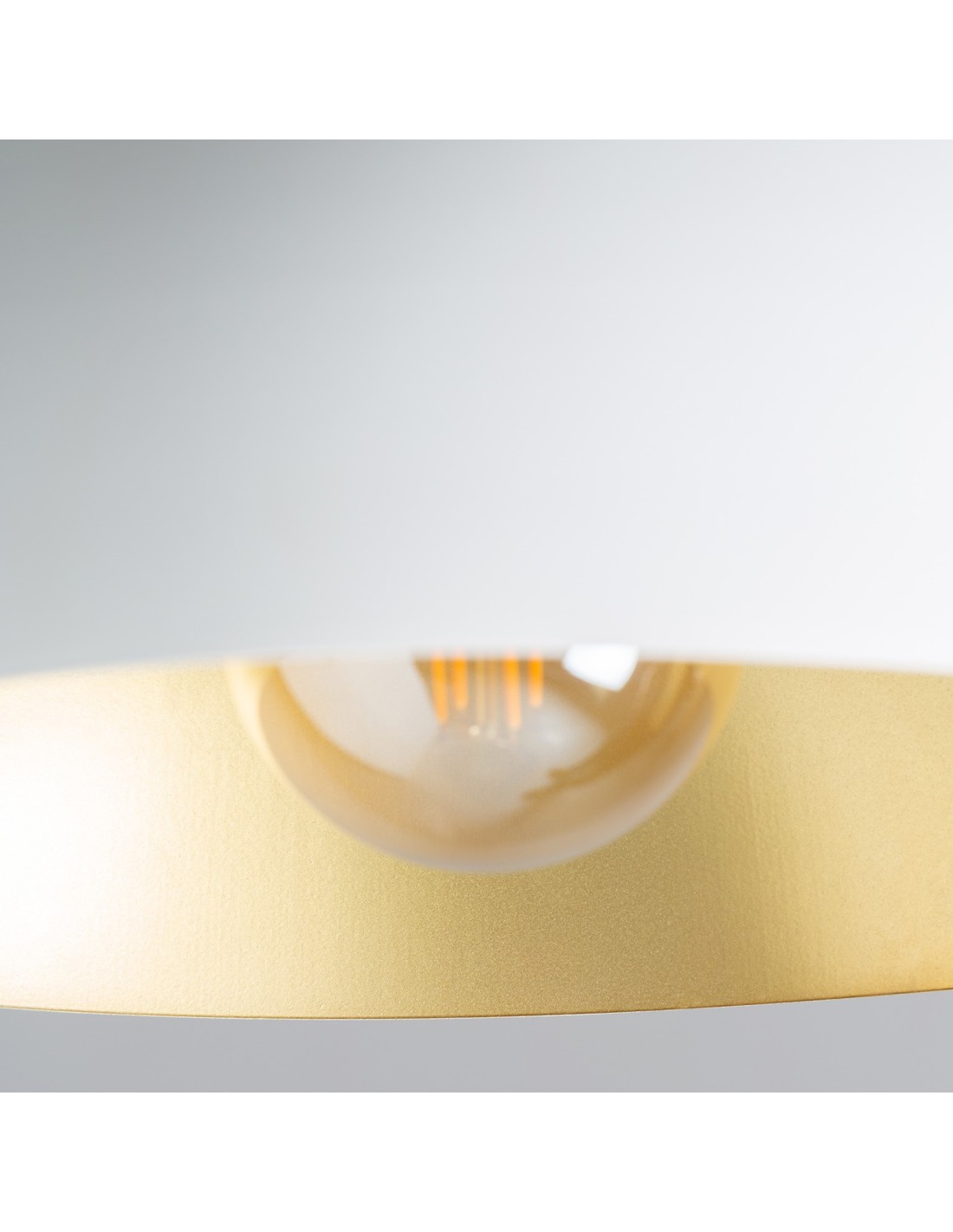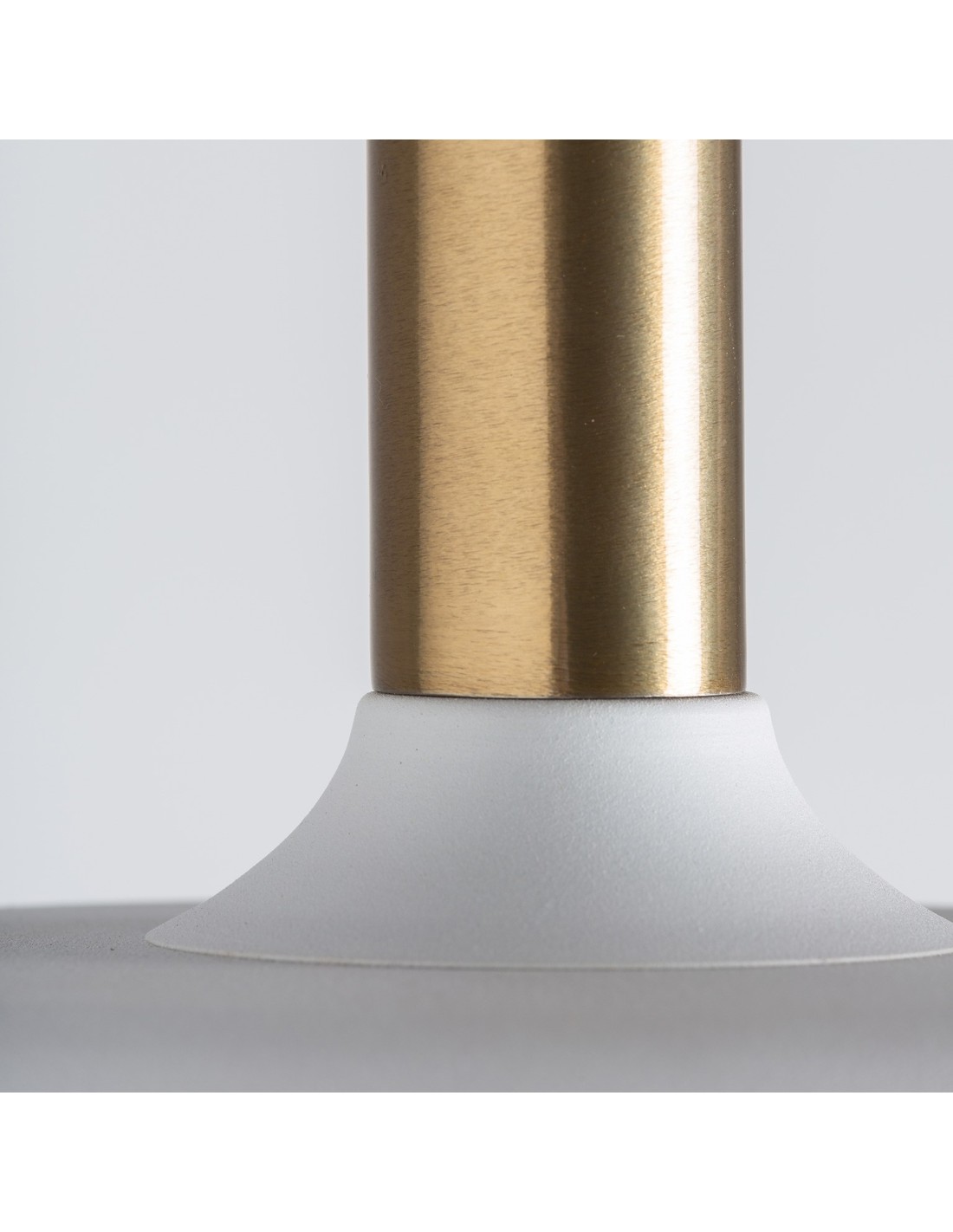 LÁMPARA DE COLGAR, EN COLOR BLANCO/ORO, DE ESTILO ART DECO. FABRICADO EN HIERRO. PRODUCTO EXTENSIBLE.