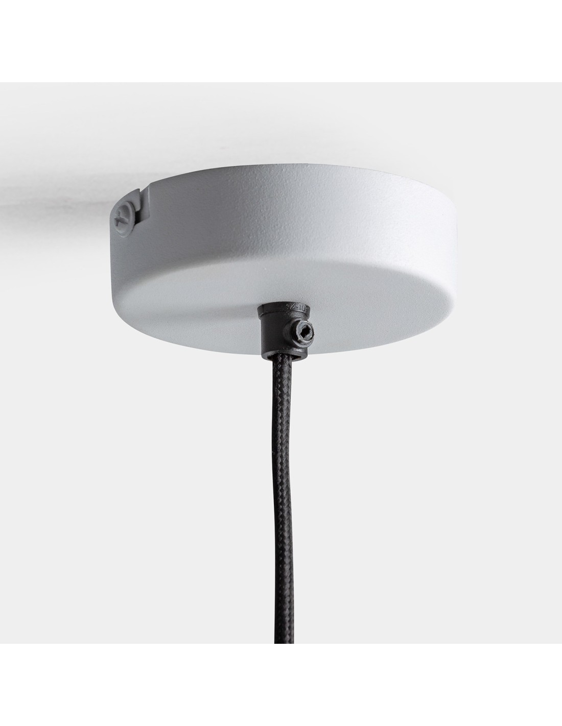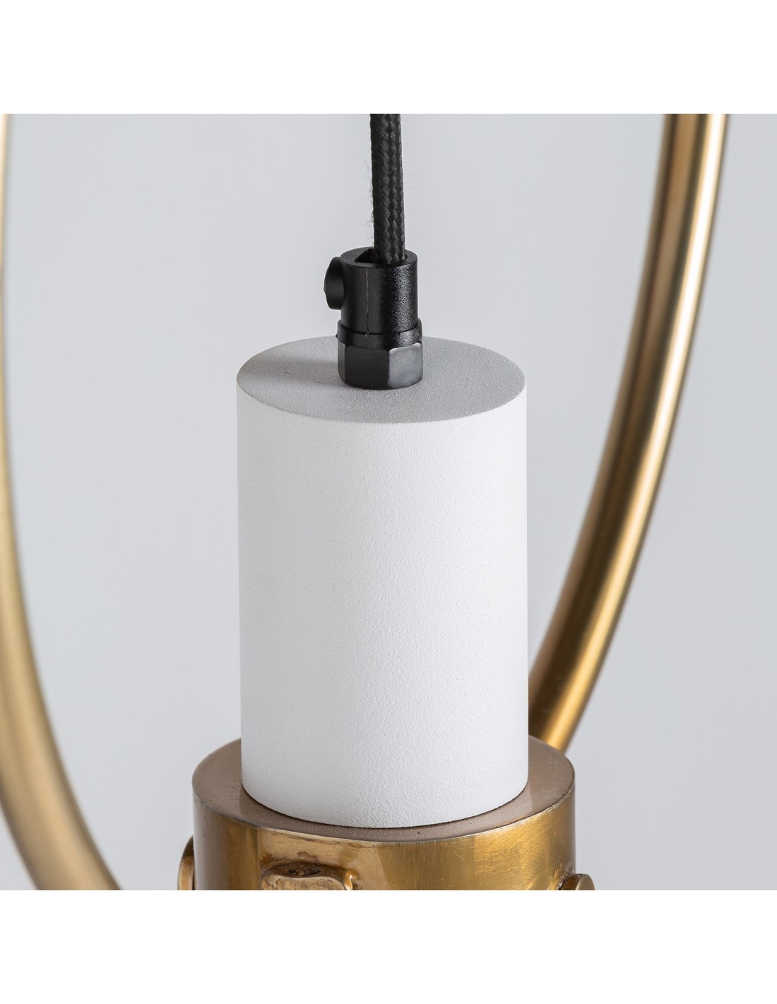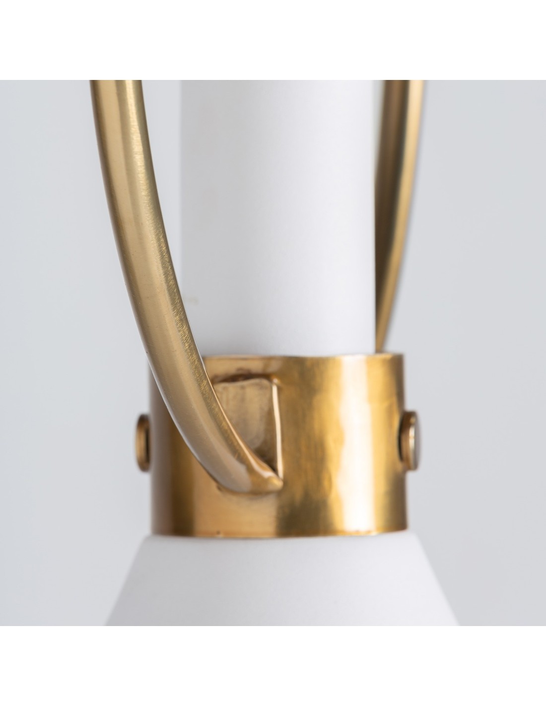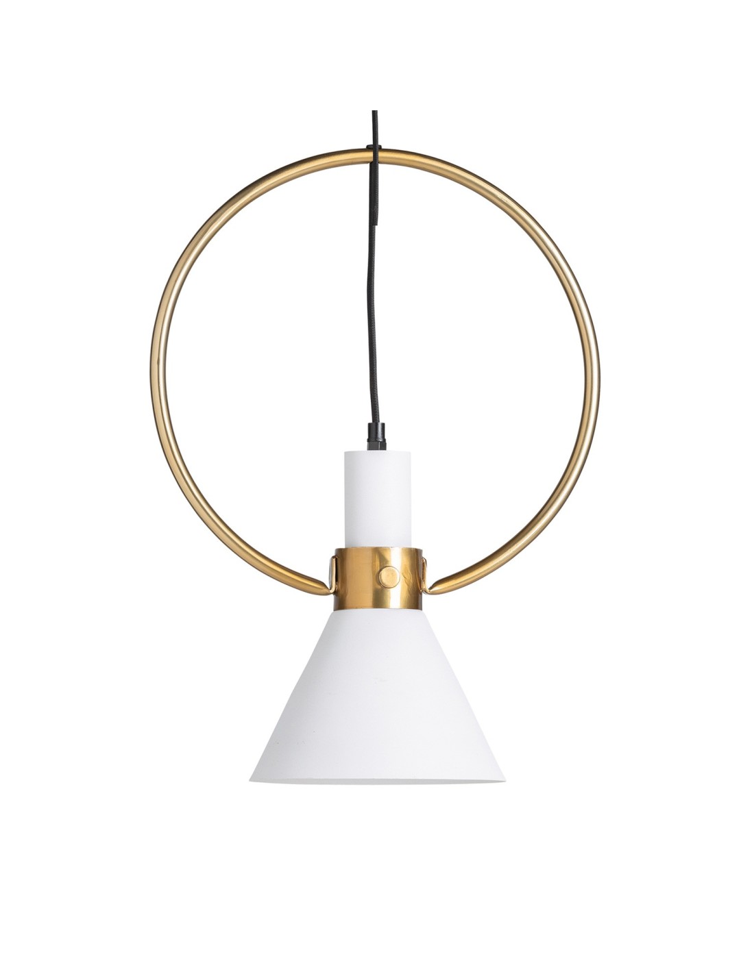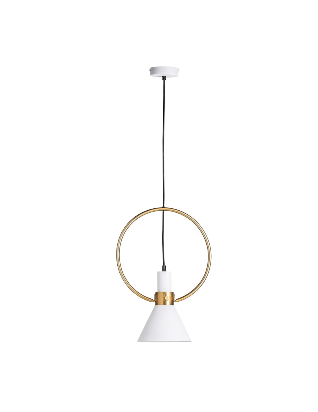 LÁMPARA DE COLGAR, EN COLOR BLANCO/ORO, DE ESTILO ART DECO. FABRICADO EN HIERRO. PRODUCTO EXTENSIBLE.
