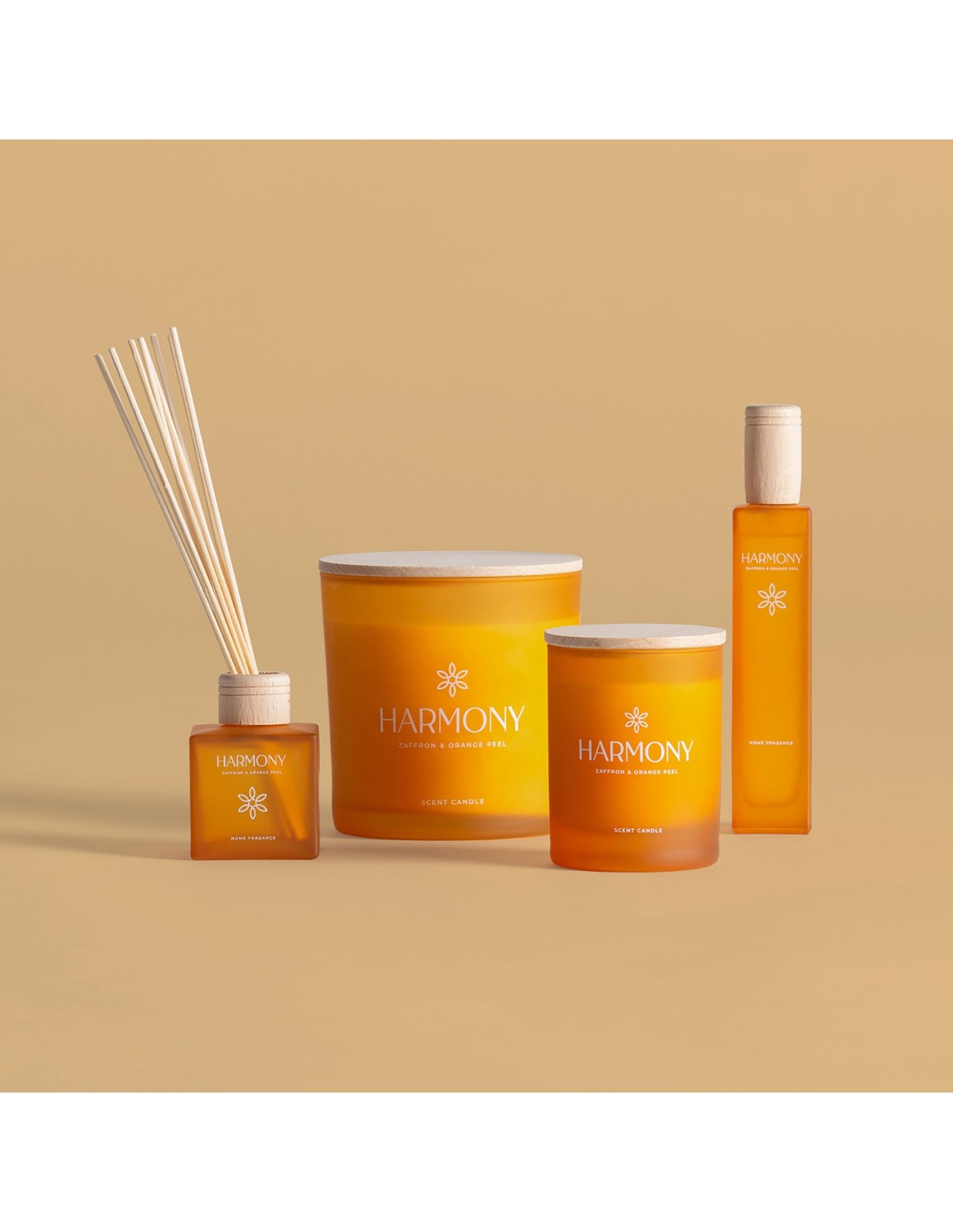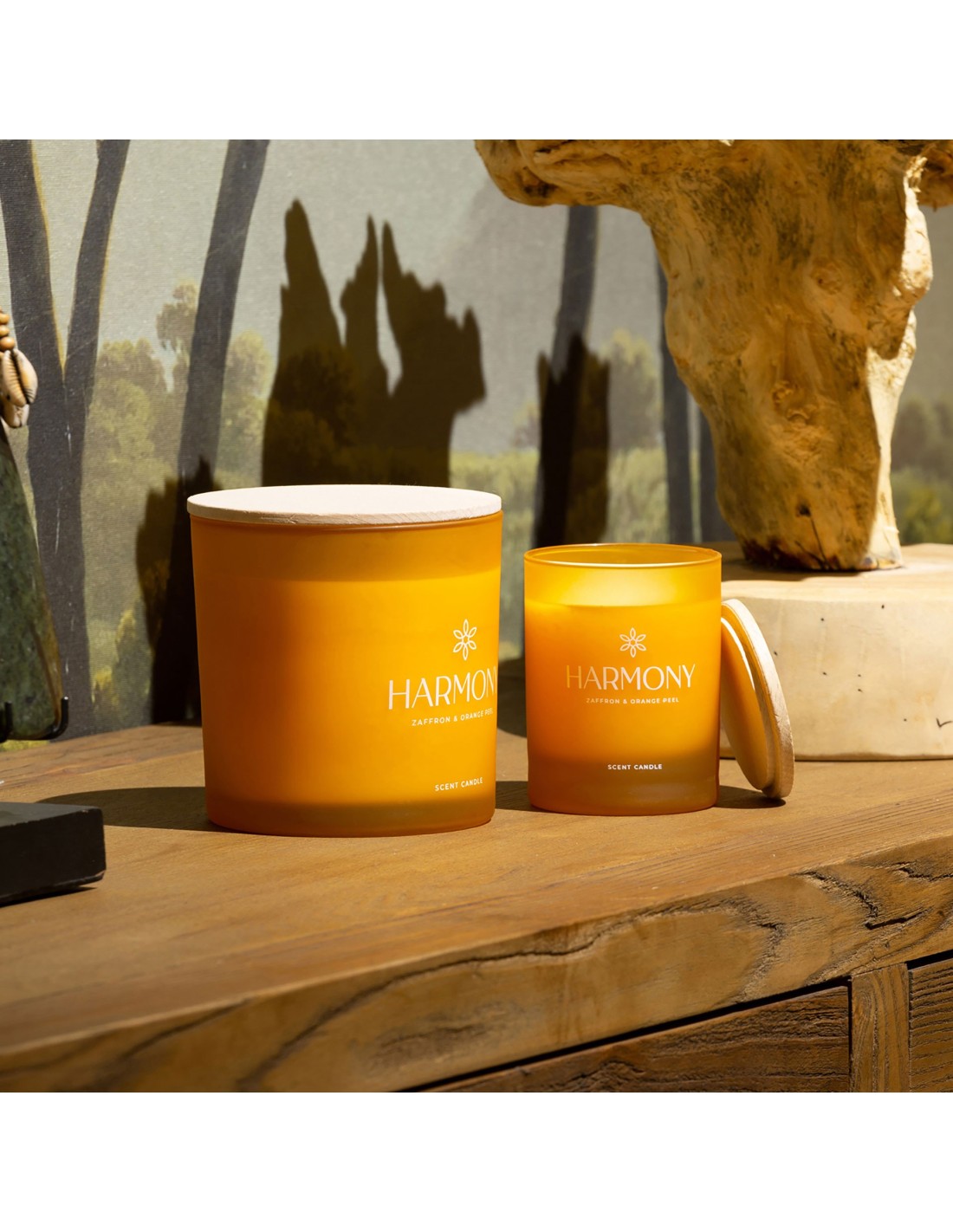 VELA HARMONY, EN COLOR NARANJA, DE ESTILO SHABBY CHIC. FABRICADO EN CERA, COMBINADO CON VIDRIO. 92% DE CERA NATURAL, 8% AZAFRÁN Y PIEL DE NARANJA.