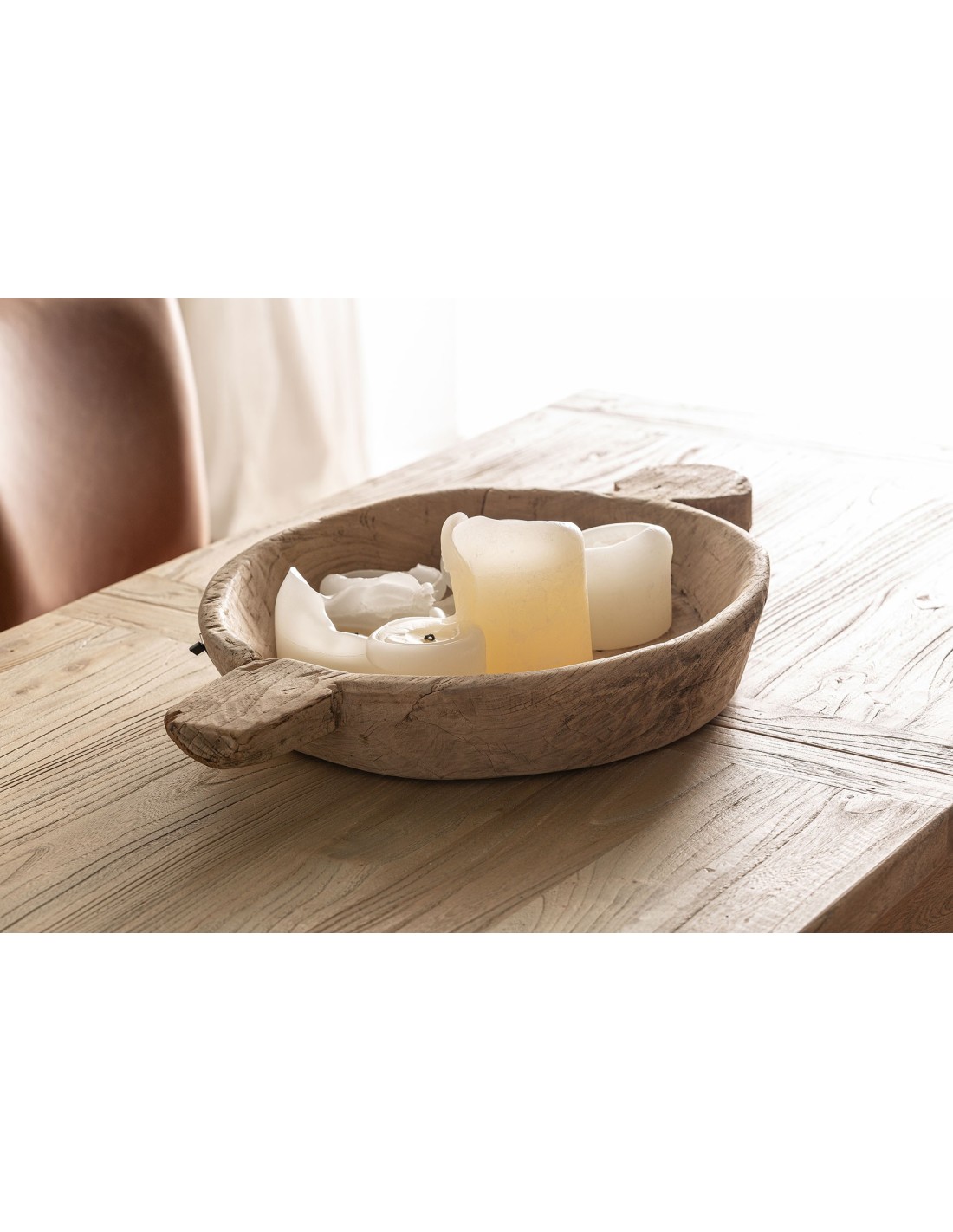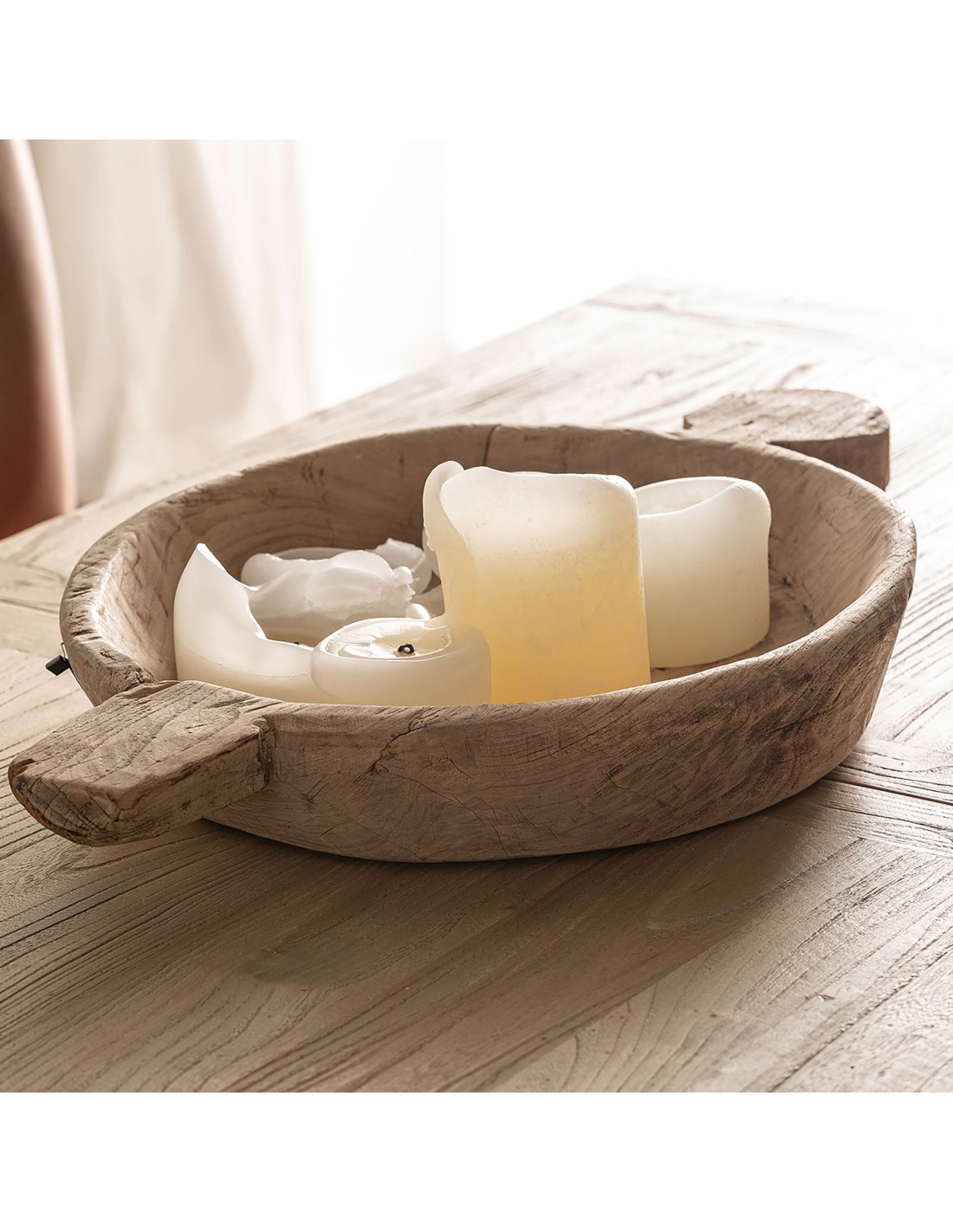 CENTRO DE MESA SURT 4 ARGEEN, EN COLOR NATURAL ENVEJECIDO, DE ESTILO ÉTNICO. FABRICADO EN MADERA DE TEKA.