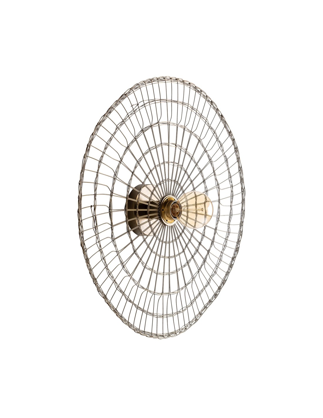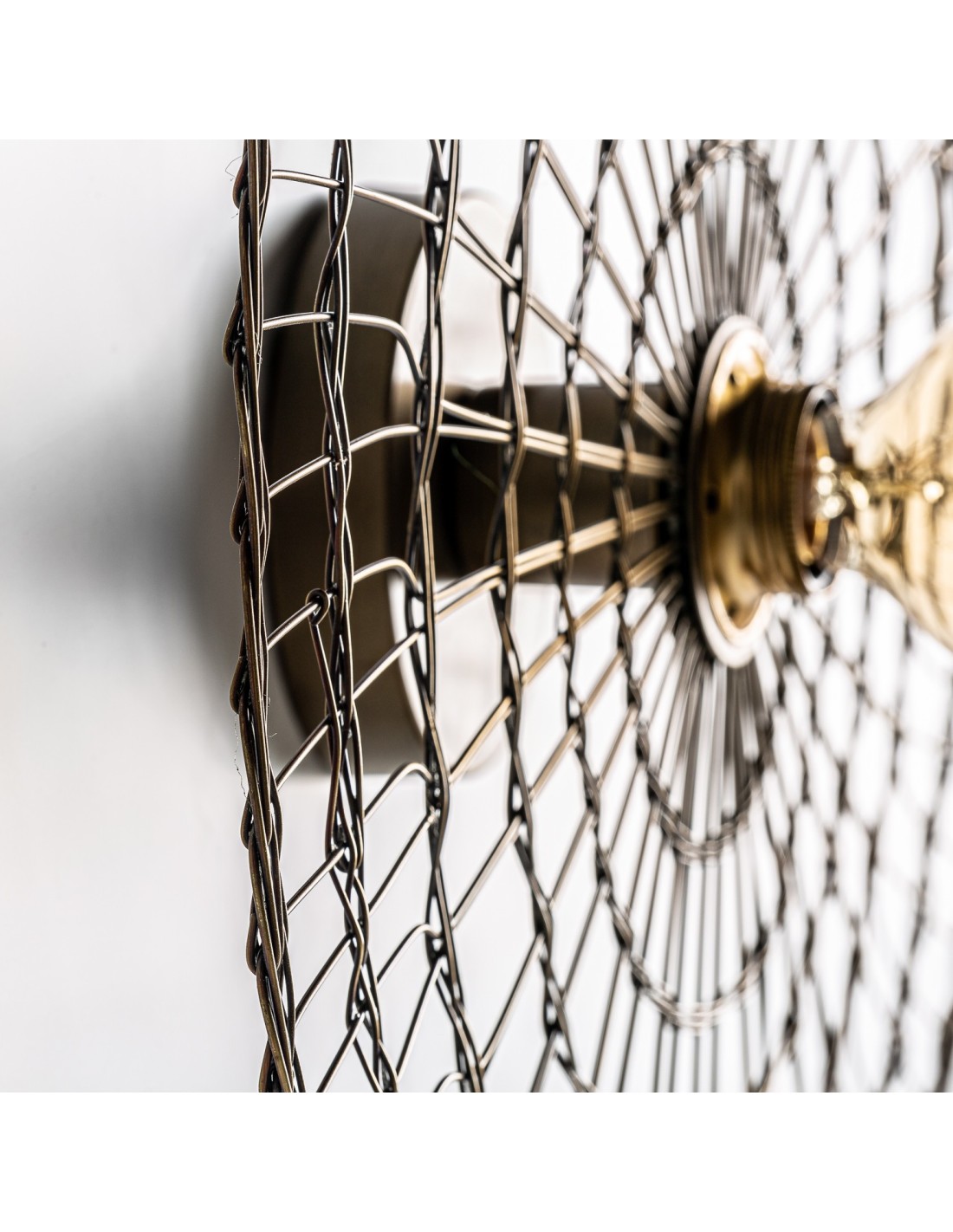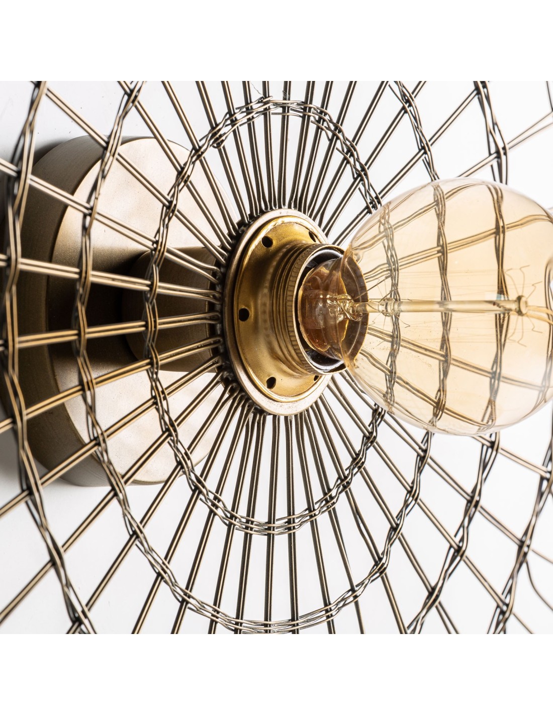 APLIQUE REDONDA, EN COLOR ORO, DE ESTILO INDUSTRIAL. FABRICADO EN HIERRO.