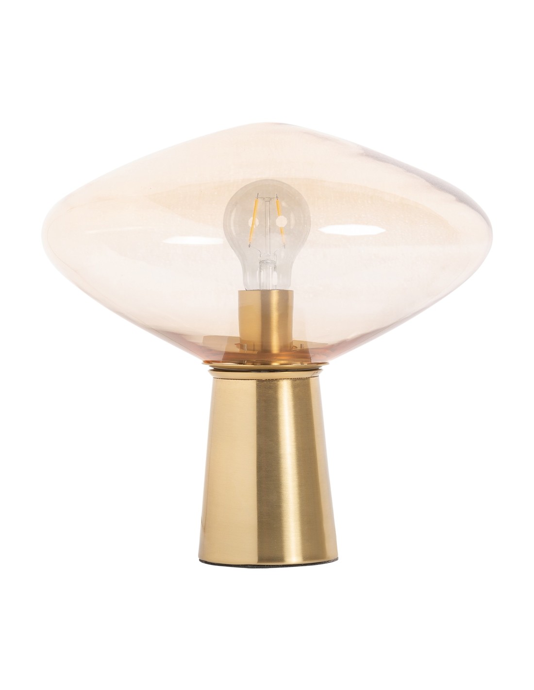 LÁMPARA DE SOBREMESA MEL, EN COLOR ORO, DE ESTILO ART DECO. FABRICADO EN HIERRO, COMBINADO CON CRISTAL. PRODUCTO DESMONTABLE.