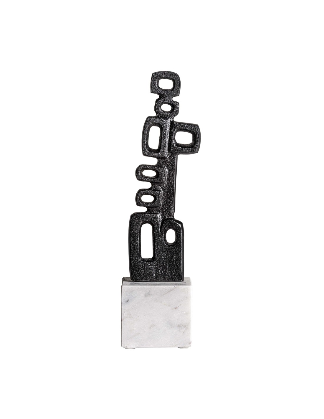 FIGURA DECORATIVA DAVET, EN COLOR BLANCO/NEGRO, DE ESTILO CONTEMPORÁNEO. FABRICADO EN ALUMINIO, COMBINADO CON MÁRMOL.