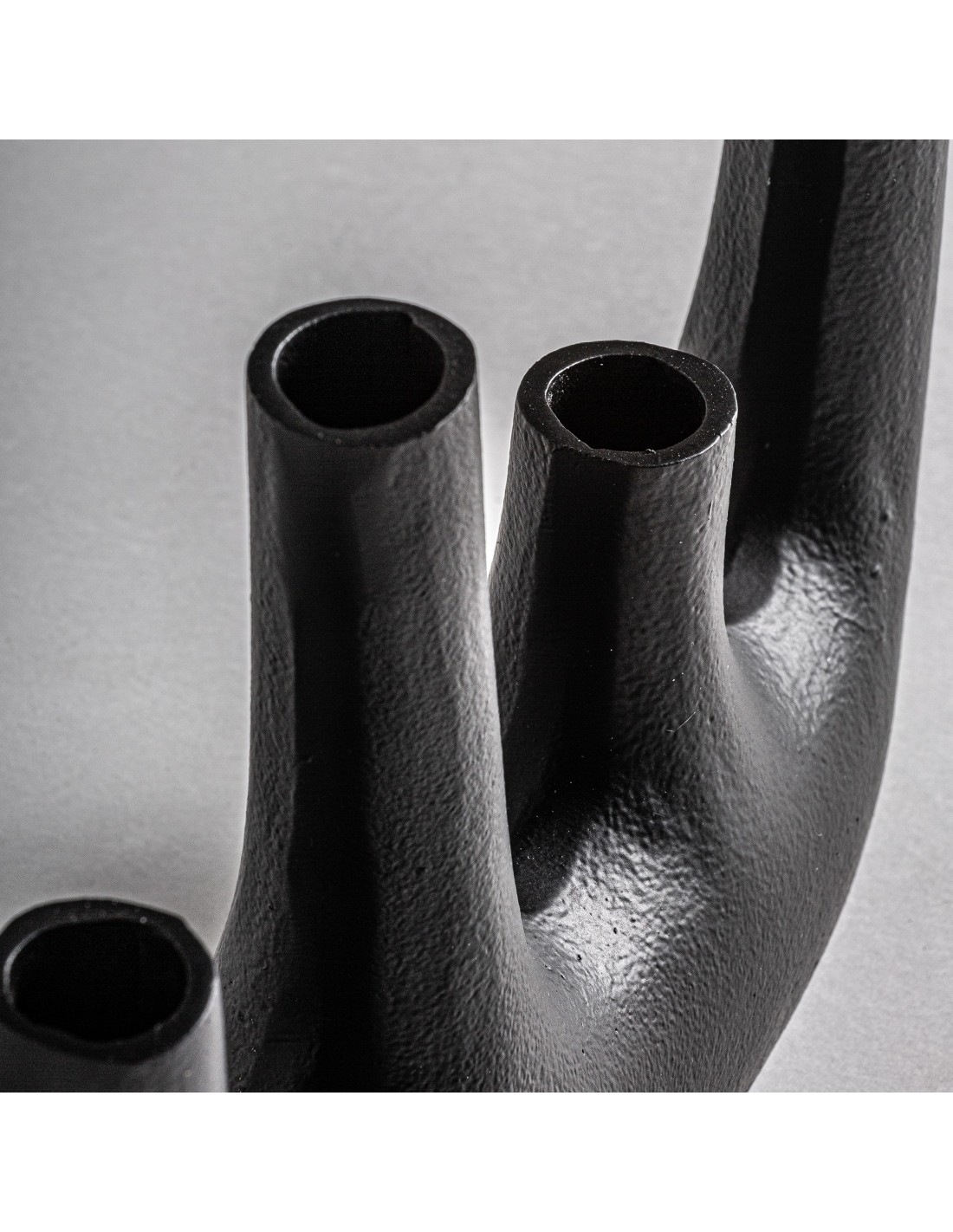 FLORERO DAVET, EN COLOR NEGRO, DE ESTILO CONTEMPORÁNEO. FABRICADO EN ALUMINIO.