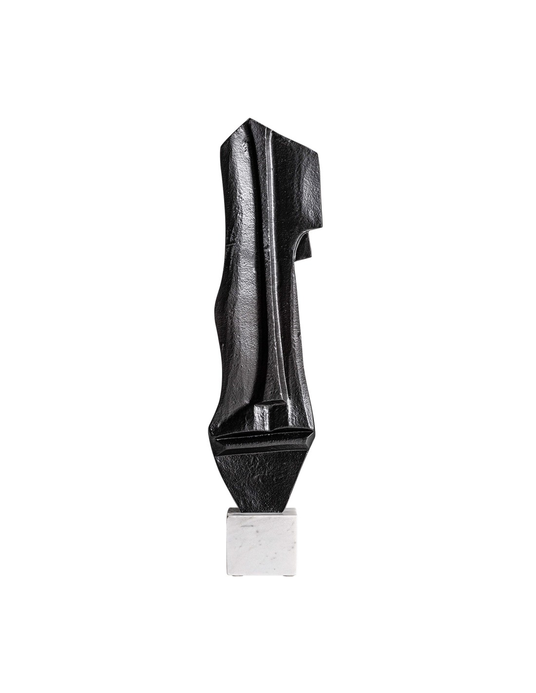 FIGURA DAVET, EN COLOR BLANCO/NEGRO, DE ESTILO CONTEMPORÁNEO. FABRICADO EN ALUMINIO, COMBINADO CON MÁRMOL.