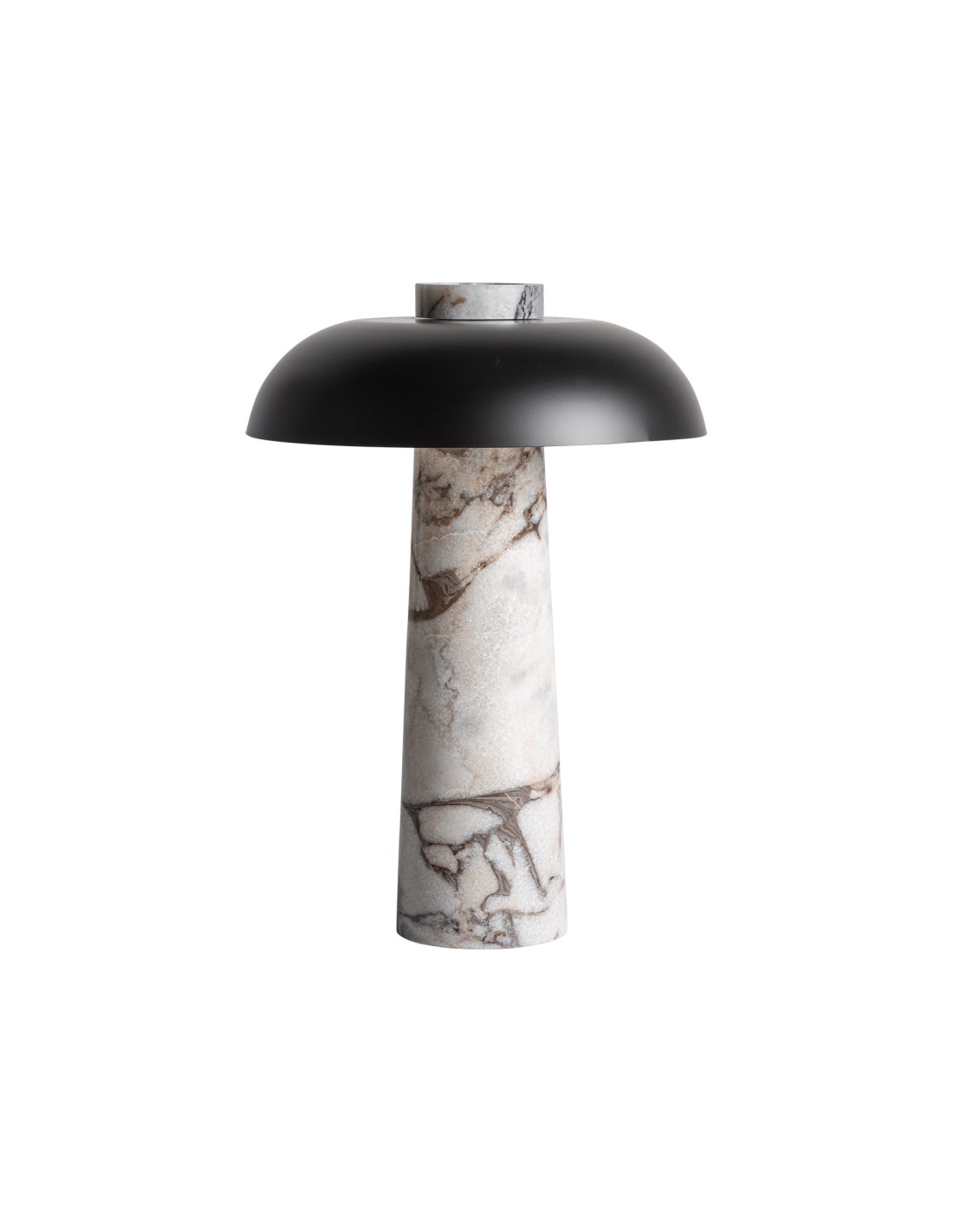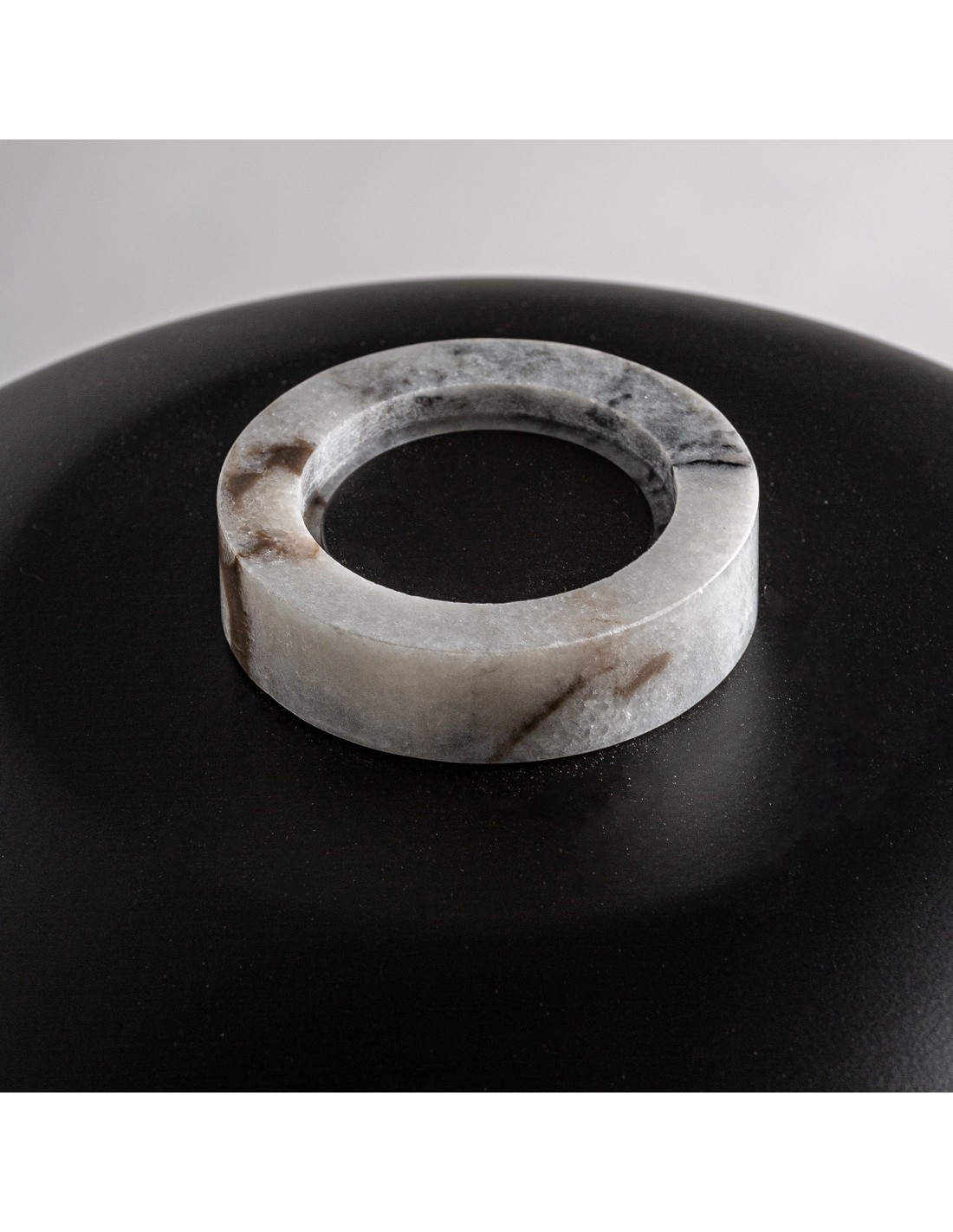 LÁMPARA DE SOBREMESA, EN COLOR NEGRO, DE ESTILO ART DECO. FABRICADO EN MÁRMOL, COMBINADO CON HIERRO.