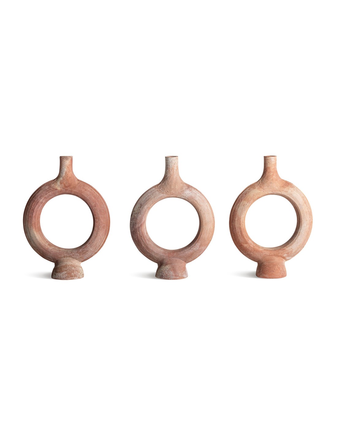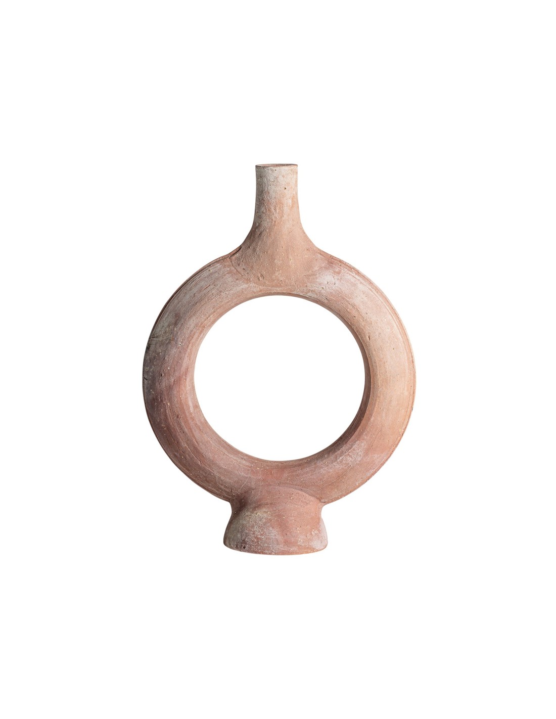 JARRÓN SURT AIKE, EN COLOR MARRÓN CLARO ENVEJECIDO, DE ESTILO CONTEMPORÁNEO. FABRICADO EN ARCILLA.