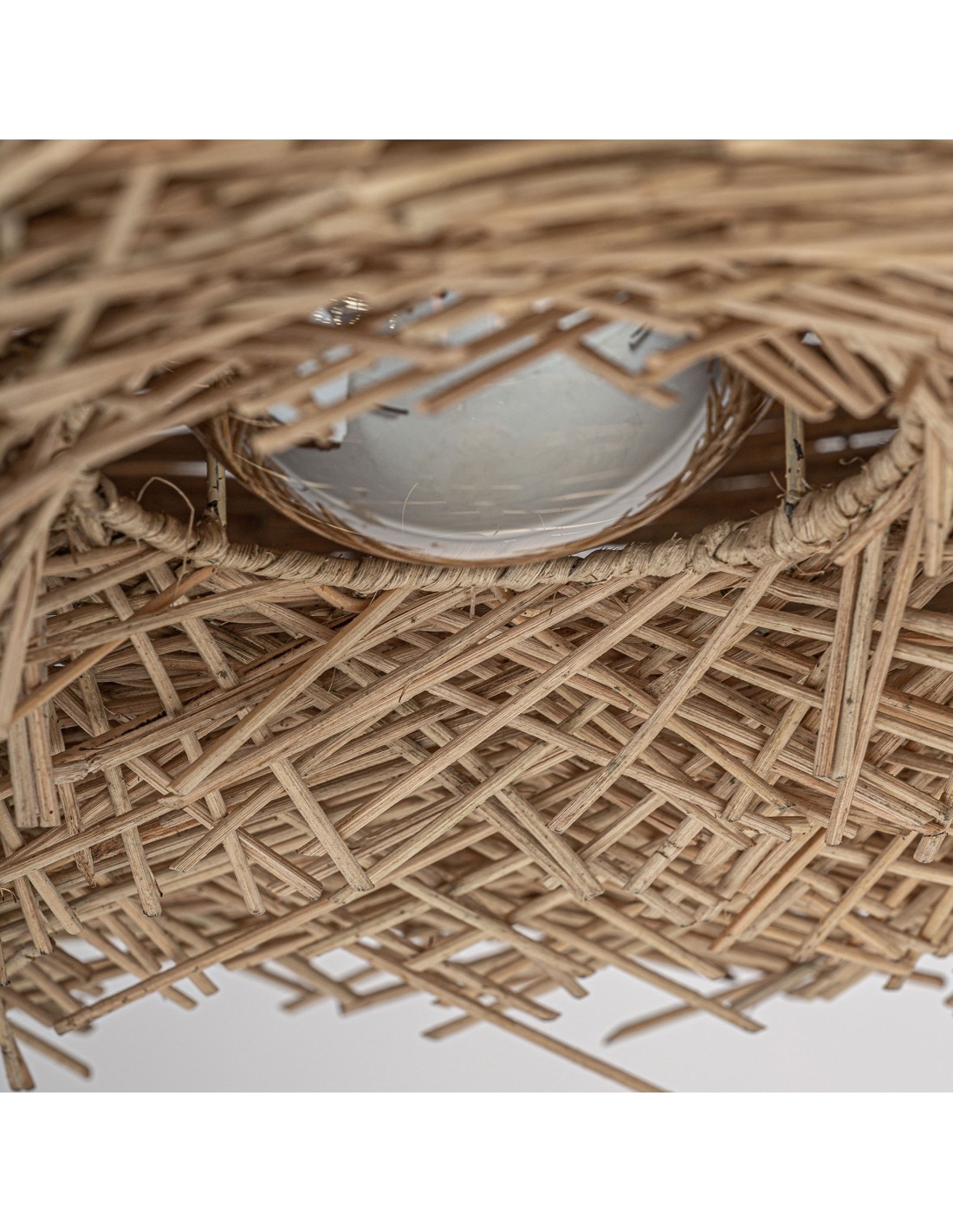 LÁMPARA DE COLGAR, EN COLOR MARRÓN, DE ESTILO BOHO. FABRICADO EN RATÁN.