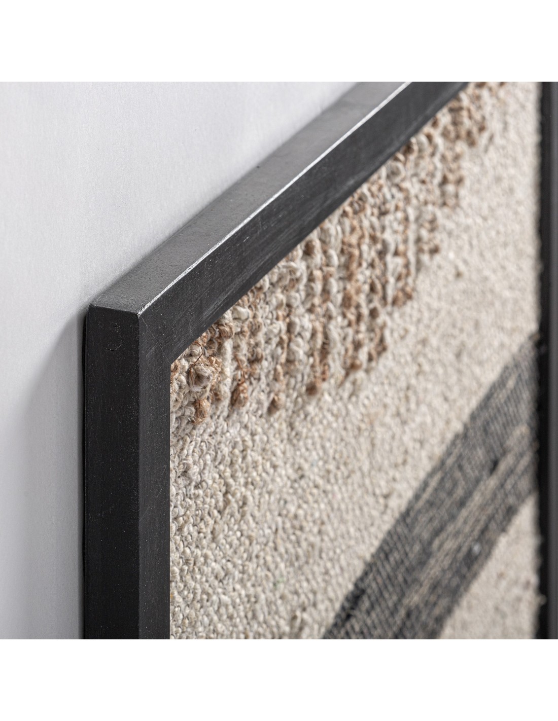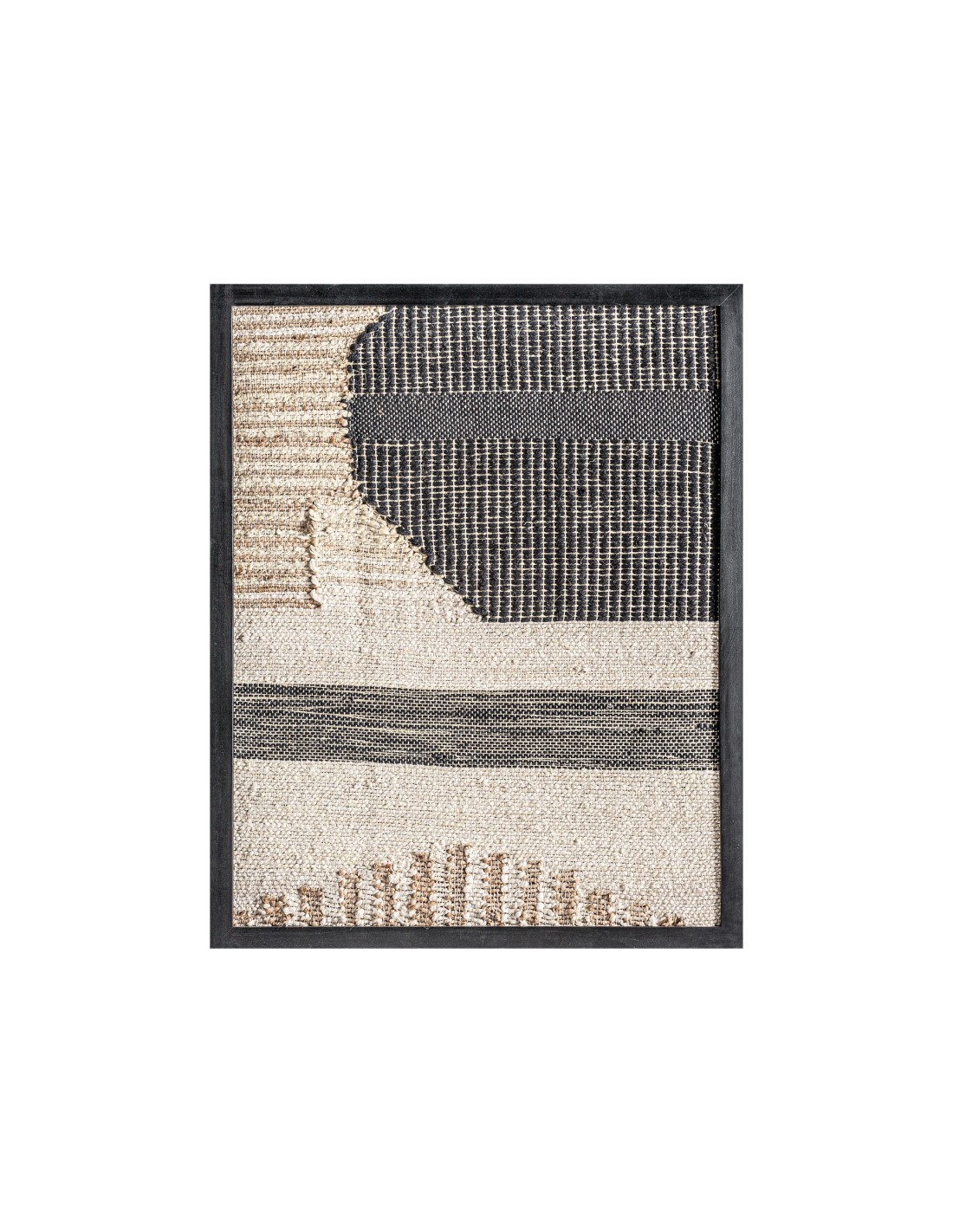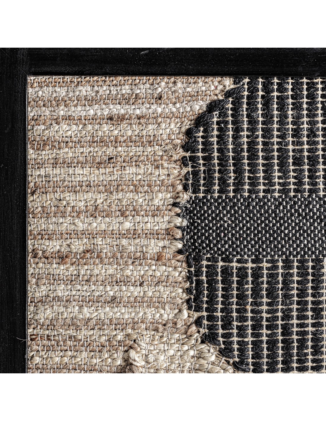 CUADRO CESC, EN COLOR TONOS OSCUROS ARTESANAL, DE ESTILO CONTEMPORÁNEO. FABRICADO EN MADERA DE MANGO, COMBINADO CON YUTE Y ALGODÓN.