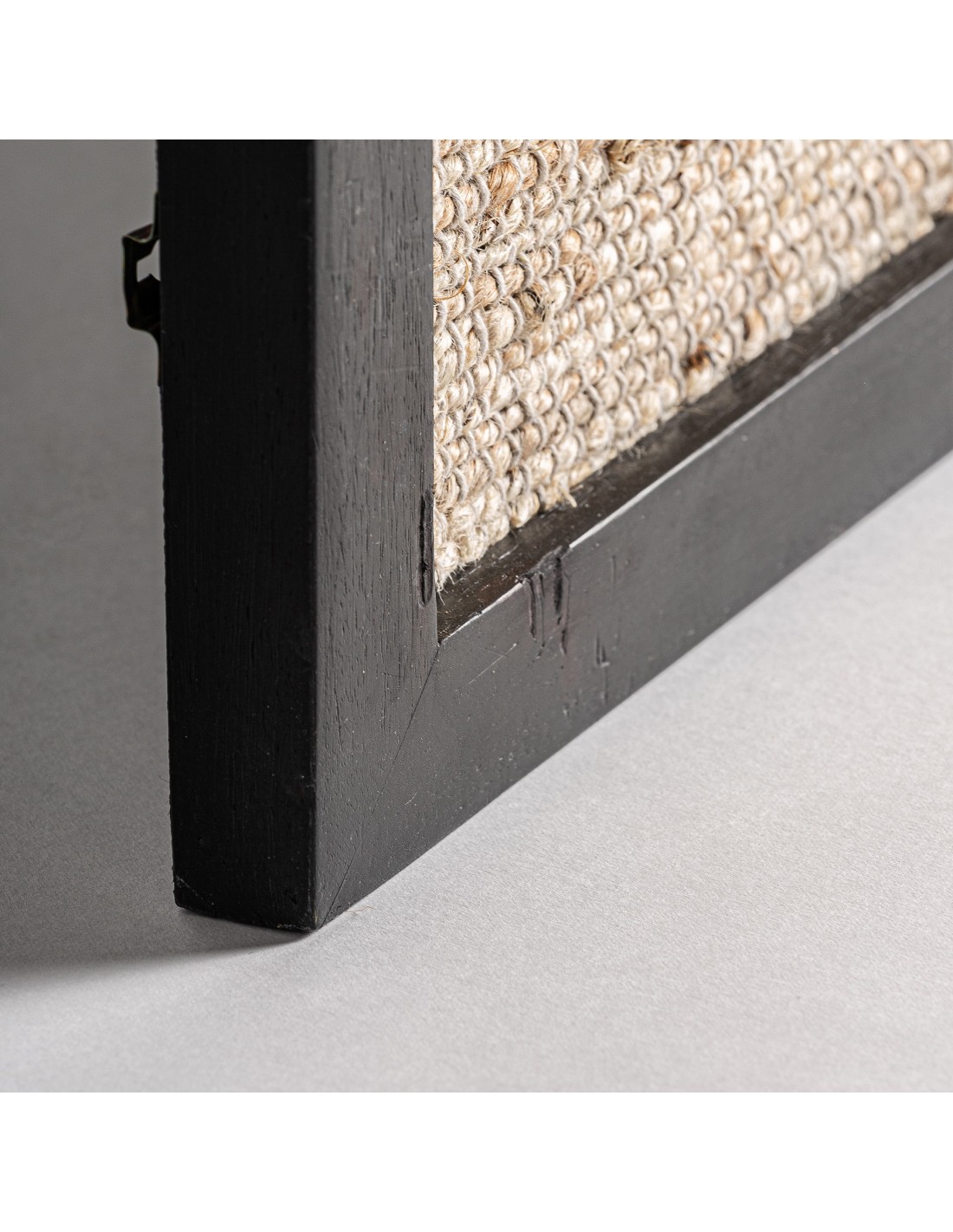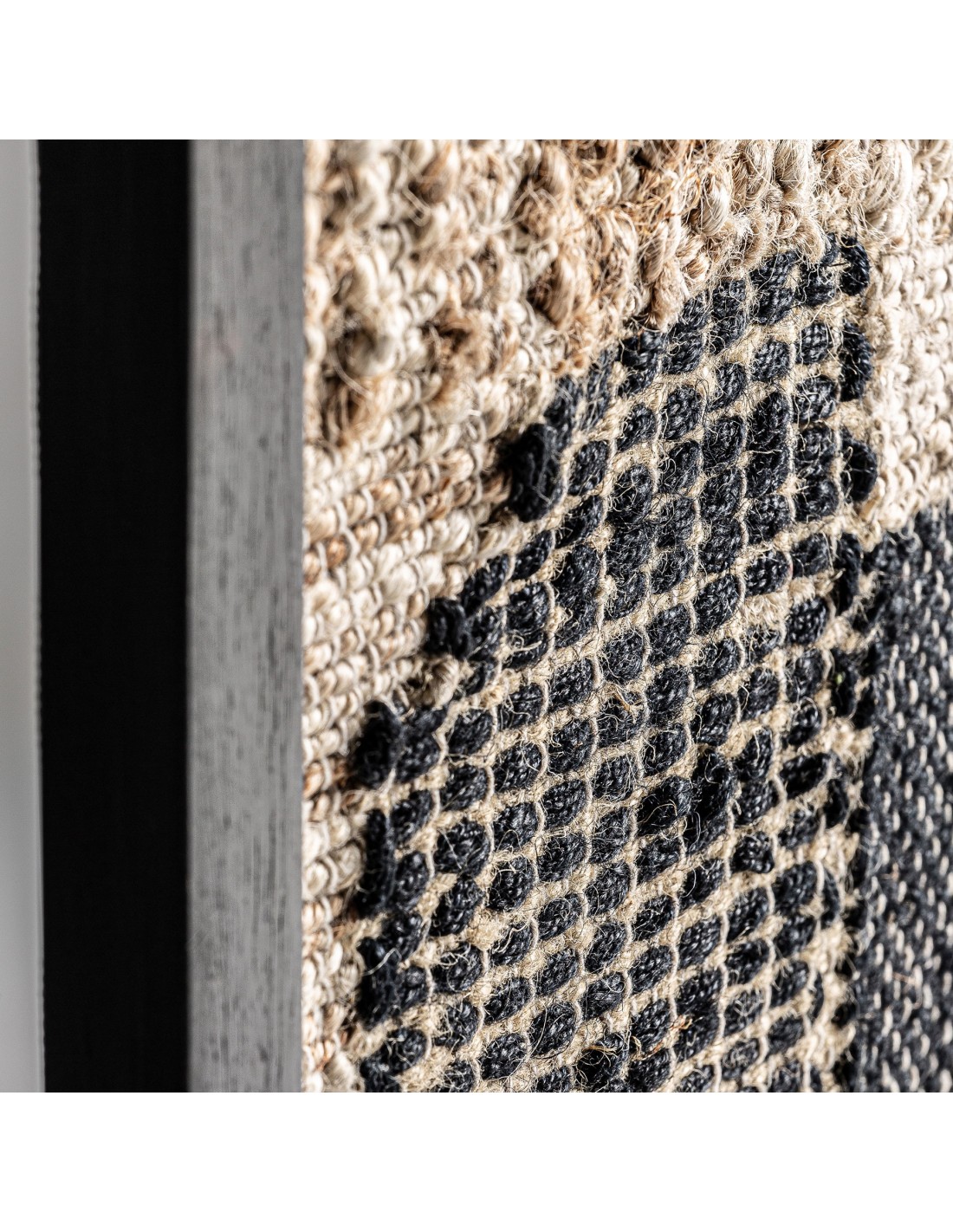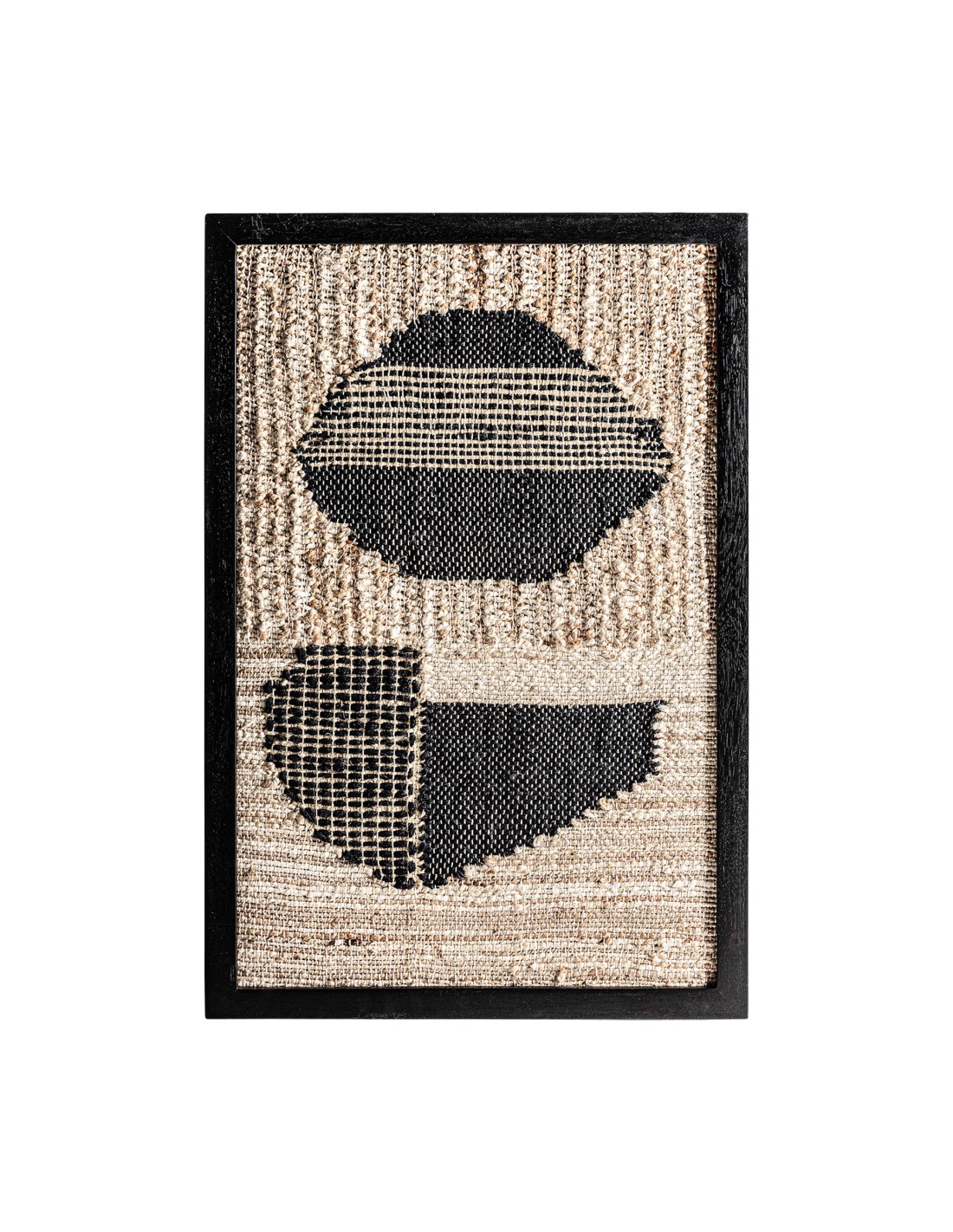CUADRO CELSO, EN COLOR TONOS OSCUROS ARTESANAL, DE ESTILO CONTEMPORÁNEO. FABRICADO EN MADERA DE MANGO, COMBINADO CON YUTE Y ALGODÓN.