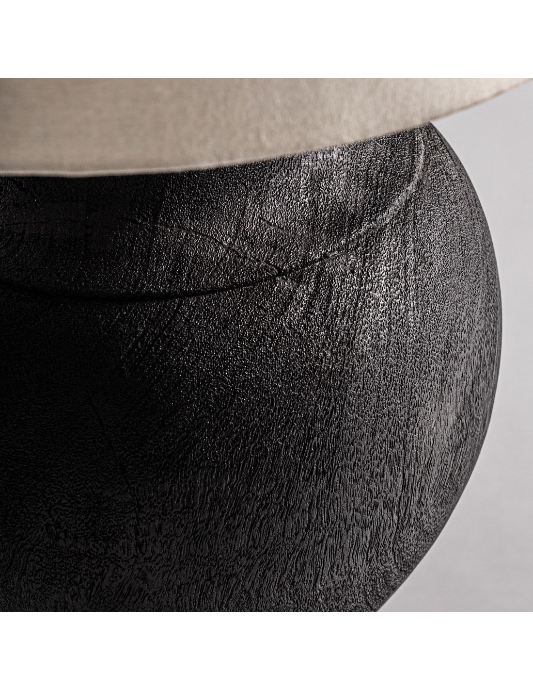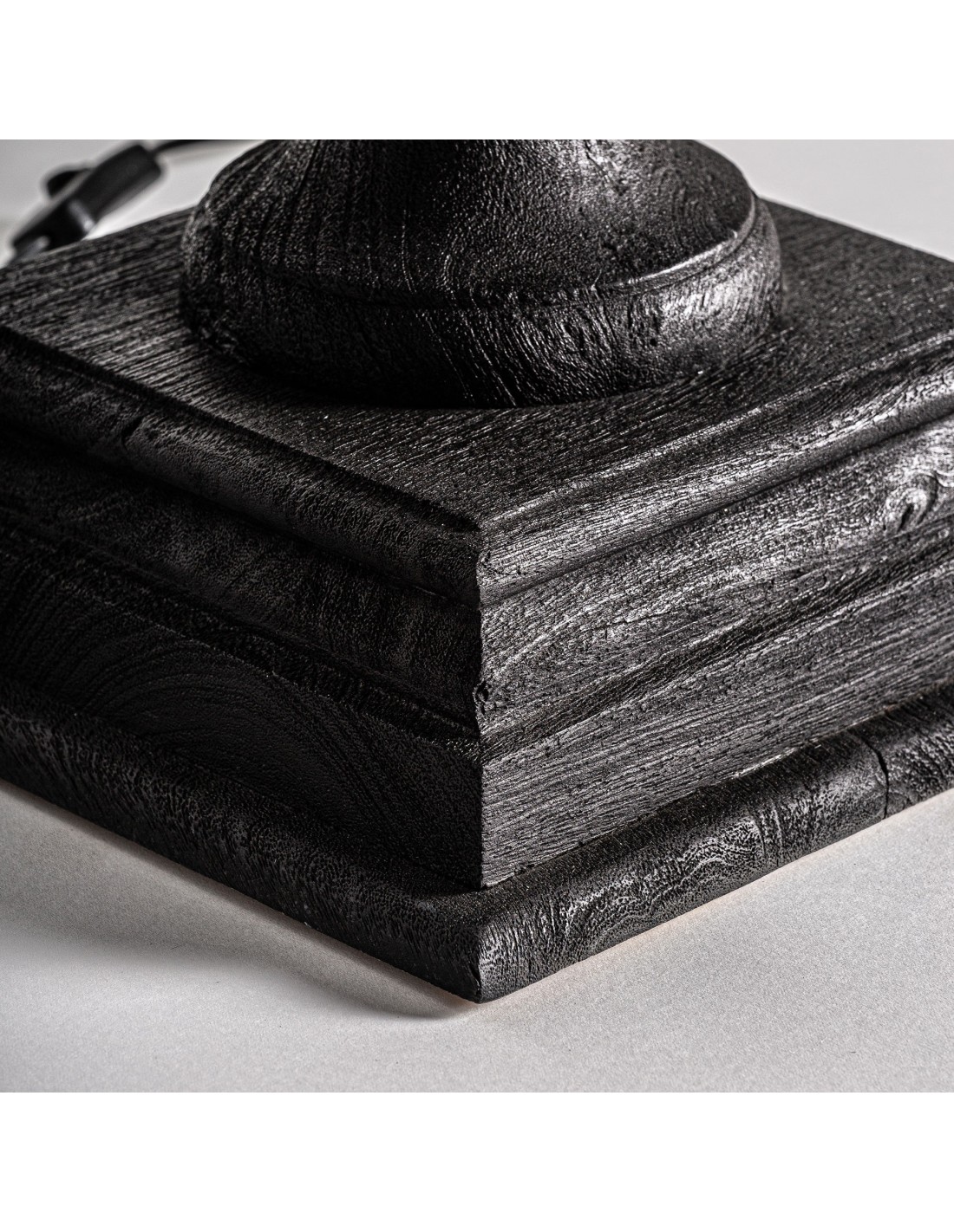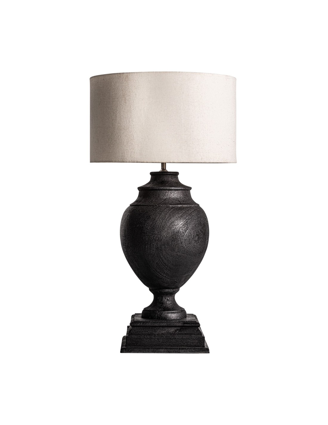 LÁMPARA DE SOBREMESA, EN COLOR NEGRA, DE ESTILO COLONIAL. FABRICADO EN MADERA DE MANGO, COMBINADO CON ALGODÓN Y HIERRO. PRODUCTO DESMONTABLE.