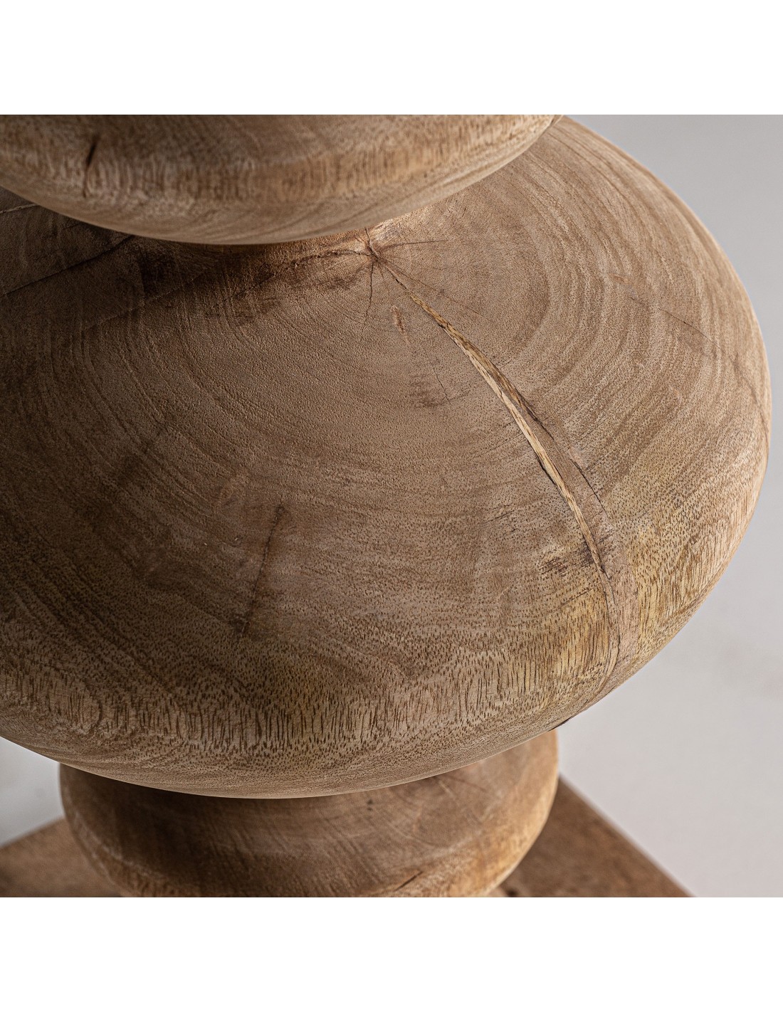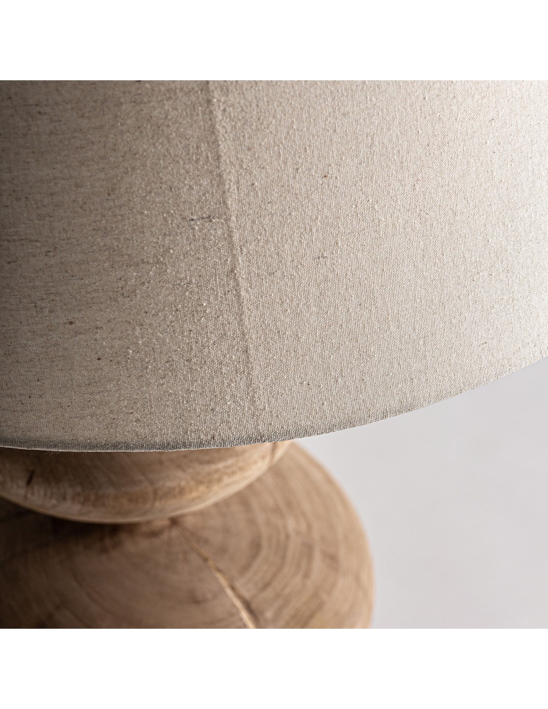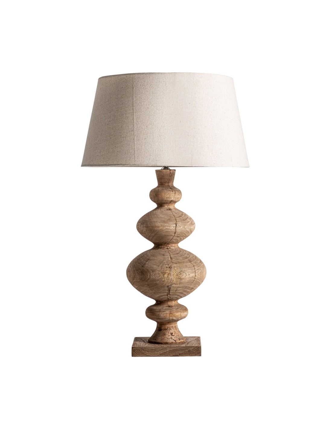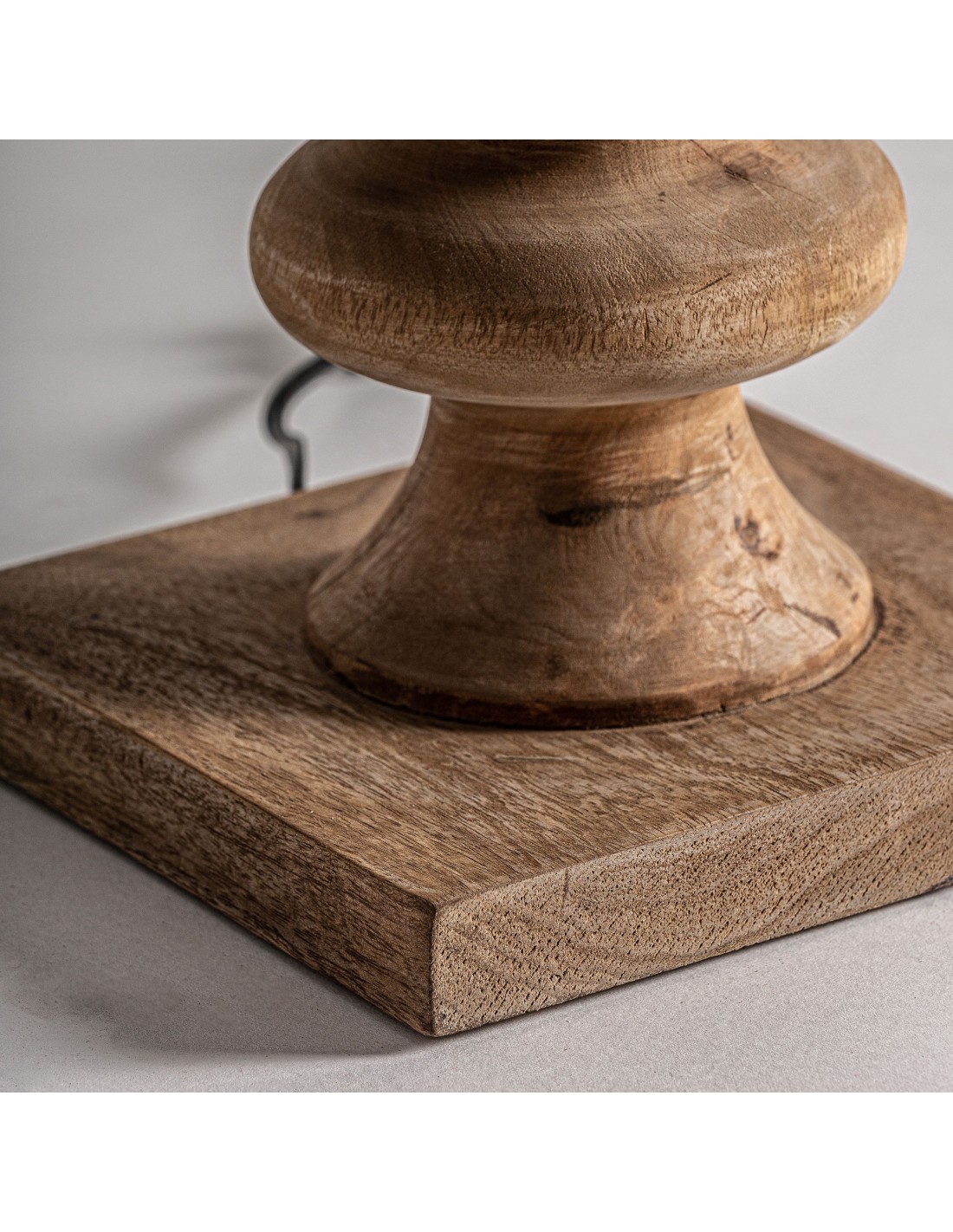 LÁMPARA DE SOBREMESA, EN COLOR MARRÓN NATURAL, DE ESTILO COLONIAL. FABRICADO EN MADERA DE MANGO, COMBINADO CON ALGODÓN Y HIERRO. PRODUCTO DESMONTABLE.