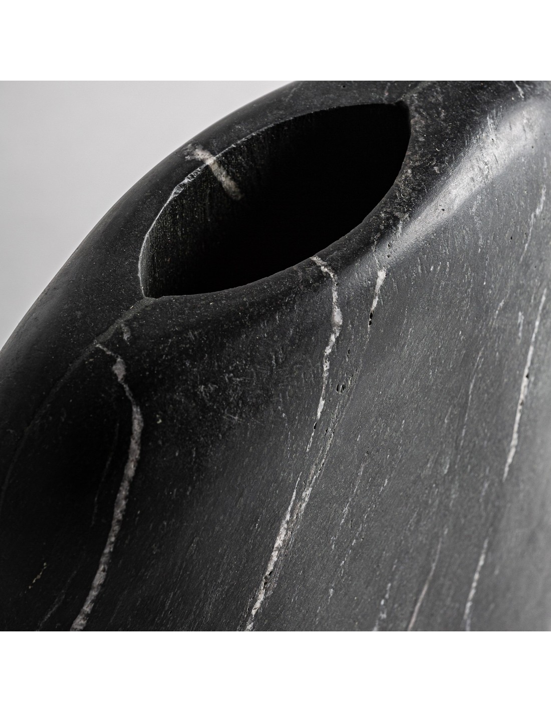 JARRÓN LEVI, EN COLOR NEGRO, DE ESTILO CONTEMPORÁNEO. FABRICADO EN MÁRMOL.