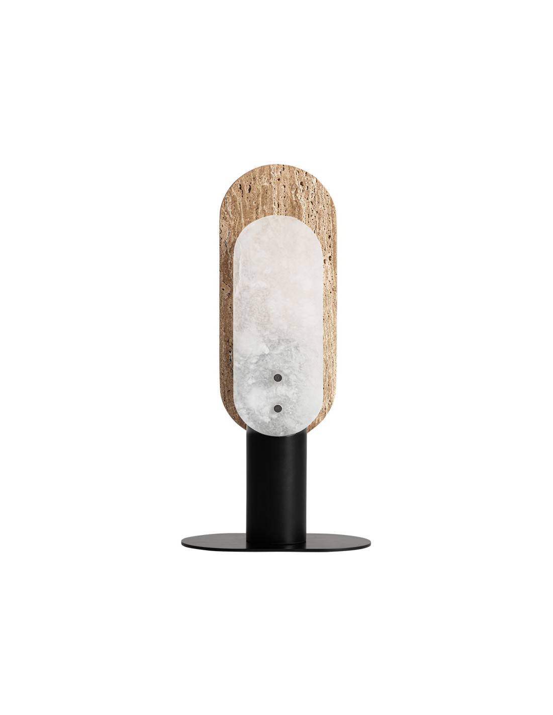 LÁMPARA DE SOBREMESA, EN COLOR NEGRO/NATURAL, DE ESTILO ART DECO. FABRICADO EN MÁRMOL, COMBINADO CON BRONCE Y METAL. PRODUCTO DESMONTABLE.