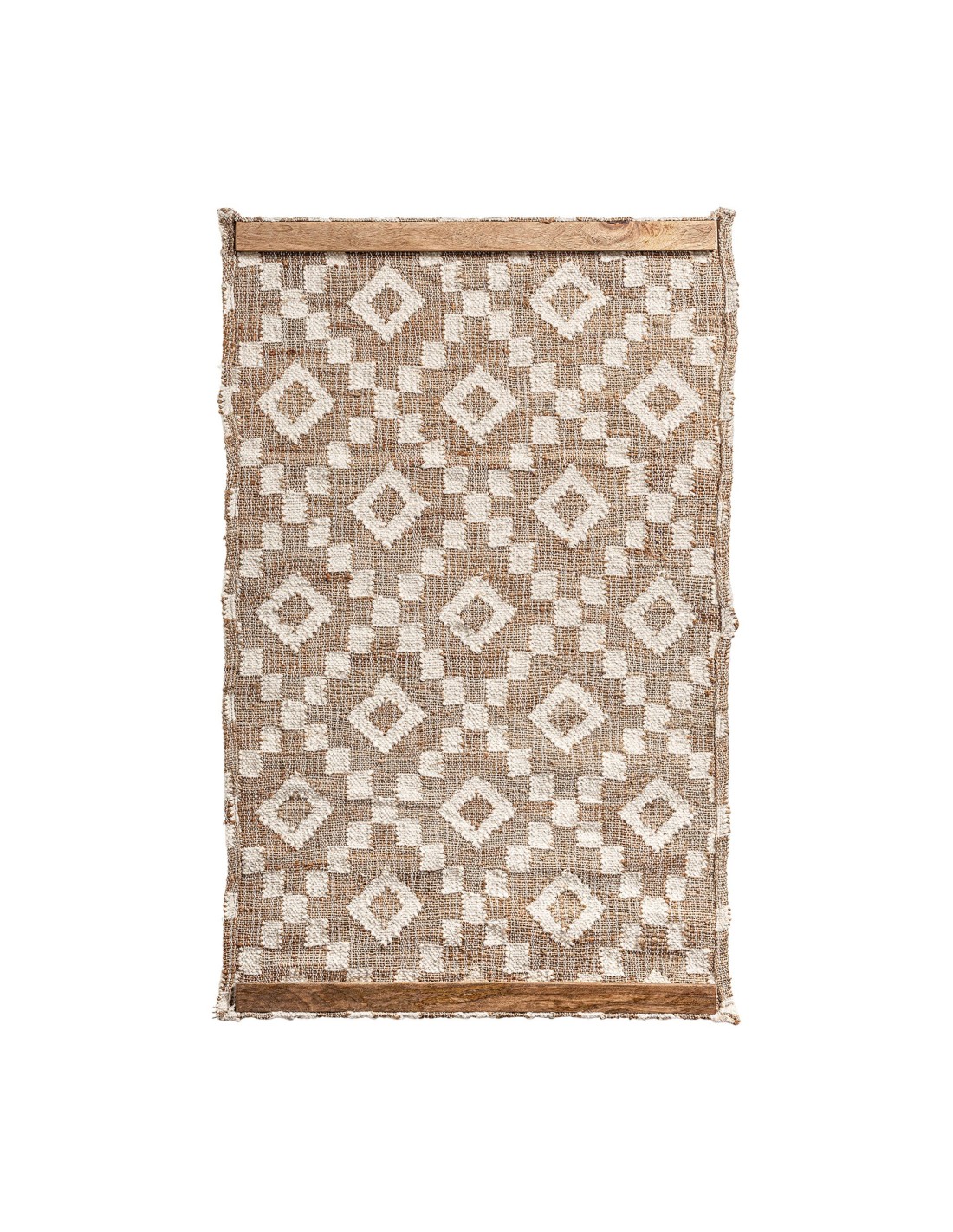 PANEL DECORATIVO SAMI, EN COLOR TONOS CLAROS, DE ESTILO BOHO. FABRICADO EN MADERA DM, COMBINADO CON ALGODÓN Y YUTE.
