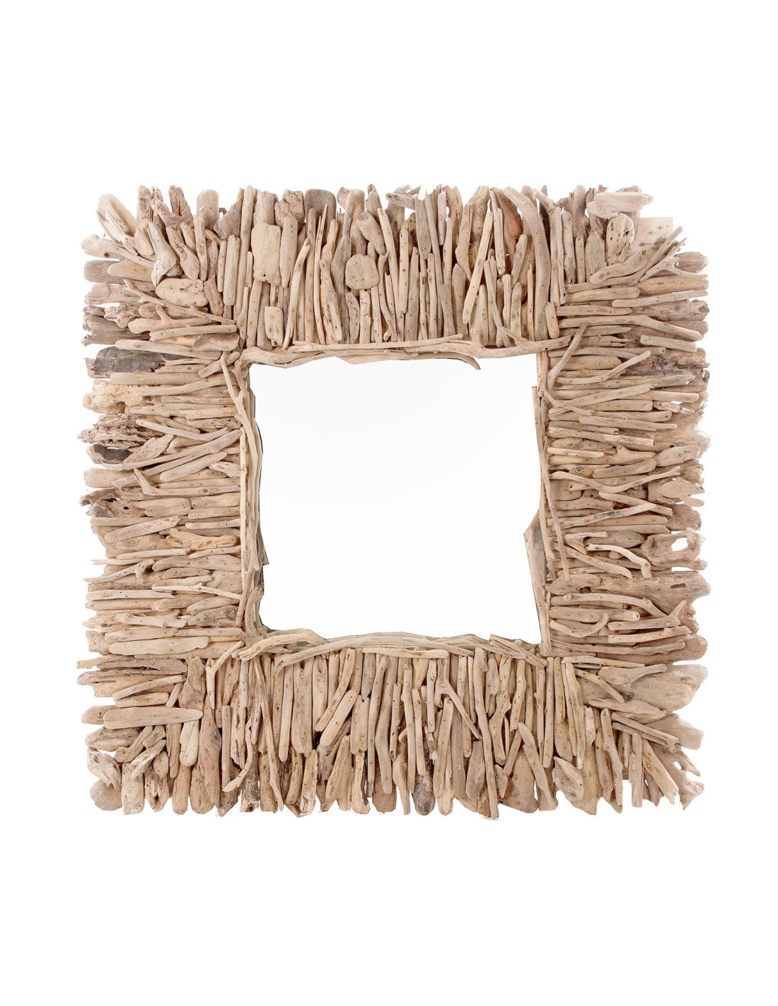 ESPEJO CUADRADO VARVERG, EN COLOR MARRÓN ENVEJECIDO, DE ESTILO ÉTNICO. FABRICADO EN MADERA MINDI, COMBINADO CON ESPEJO.