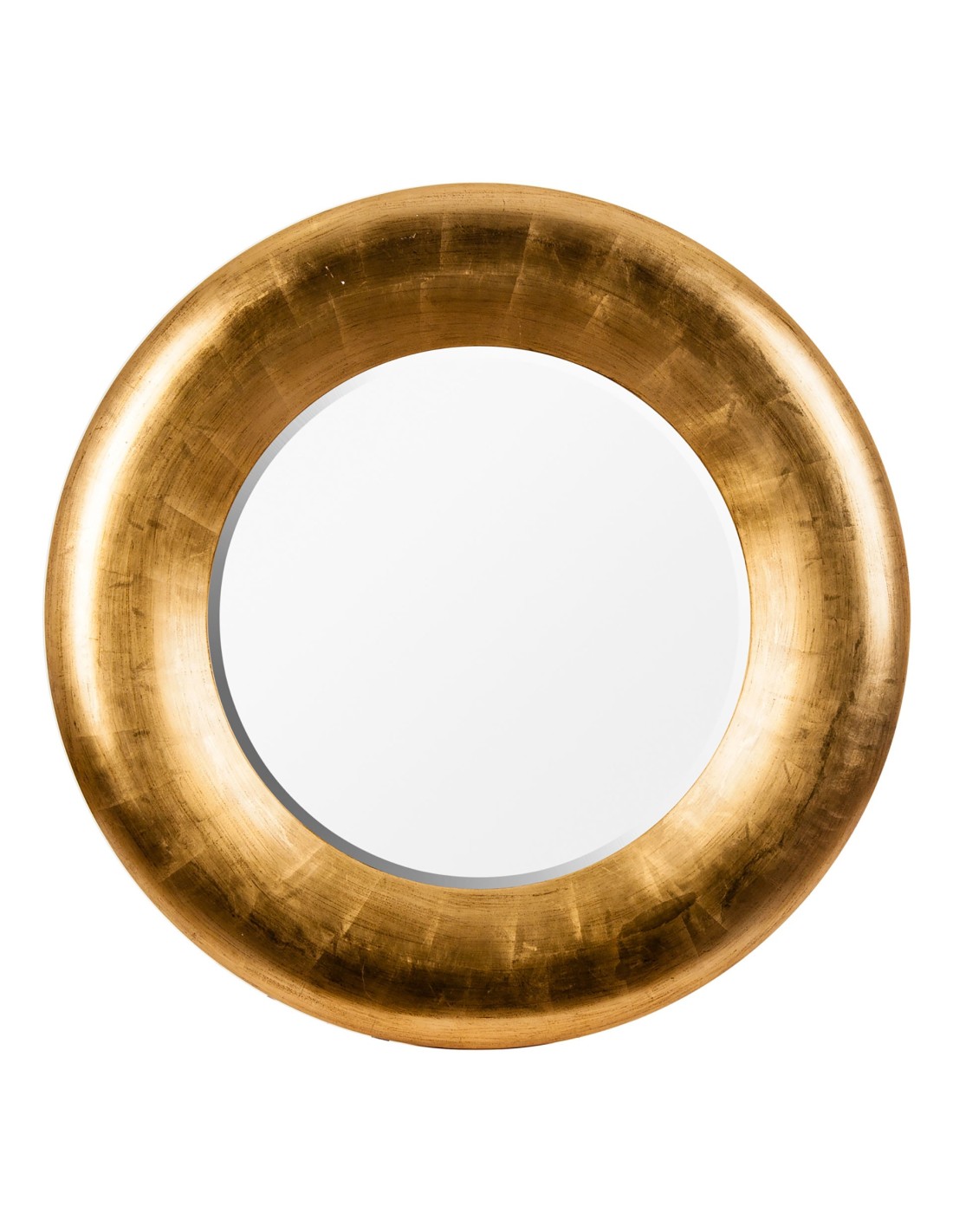 ESPEJO REDONDO REGEN, EN COLOR ORO, DE ESTILO ART DECO. FABRICADO EN RESINA, COMBINADO CON ESPEJO.